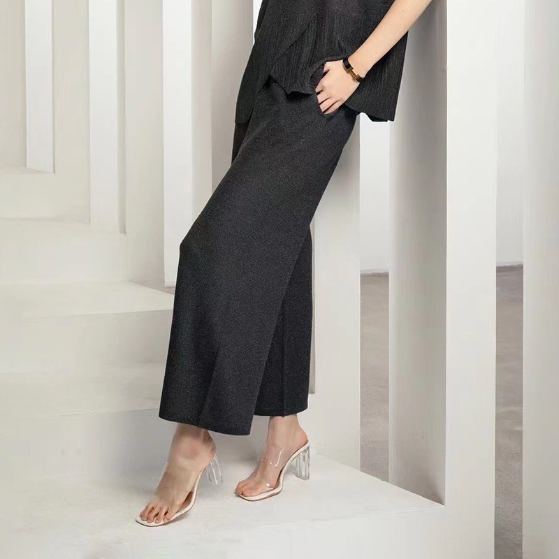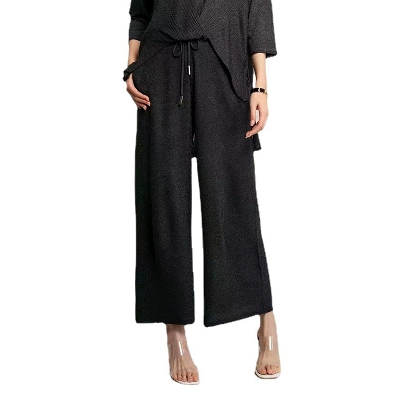 Versatile Lazy Style Tencel Knitted Straight Pants For Women Spring And Summer Style Drape Slim Loose Wide-leg Pants Casual Pants For Women