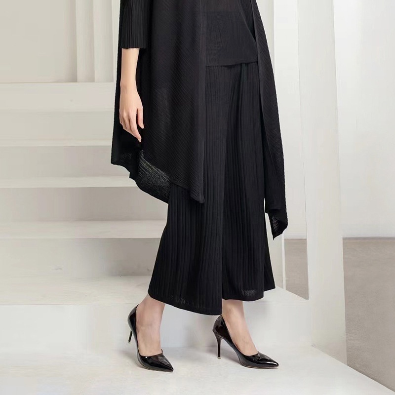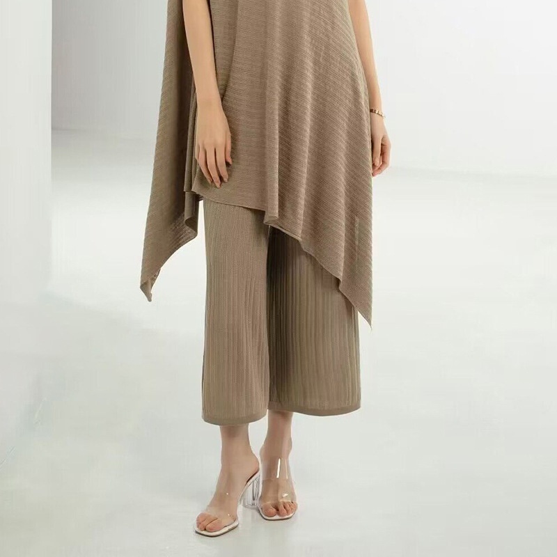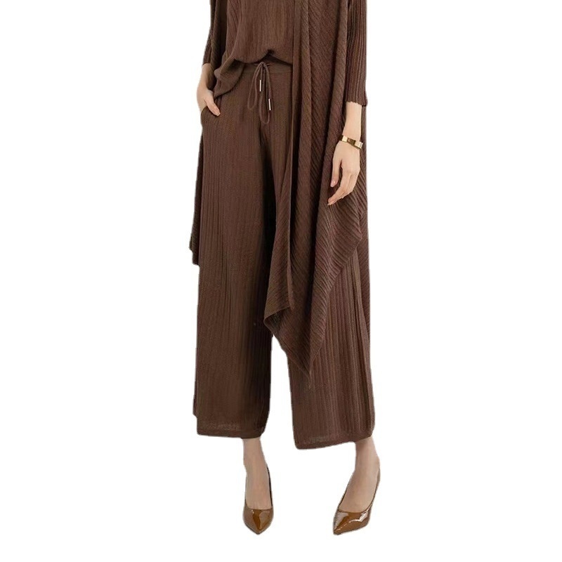 Spring,Summer And Autumn Large Size Women's Knitted Wide-leg Pants Loose Drape Slim Straight Casual Pants Women's Nine Points