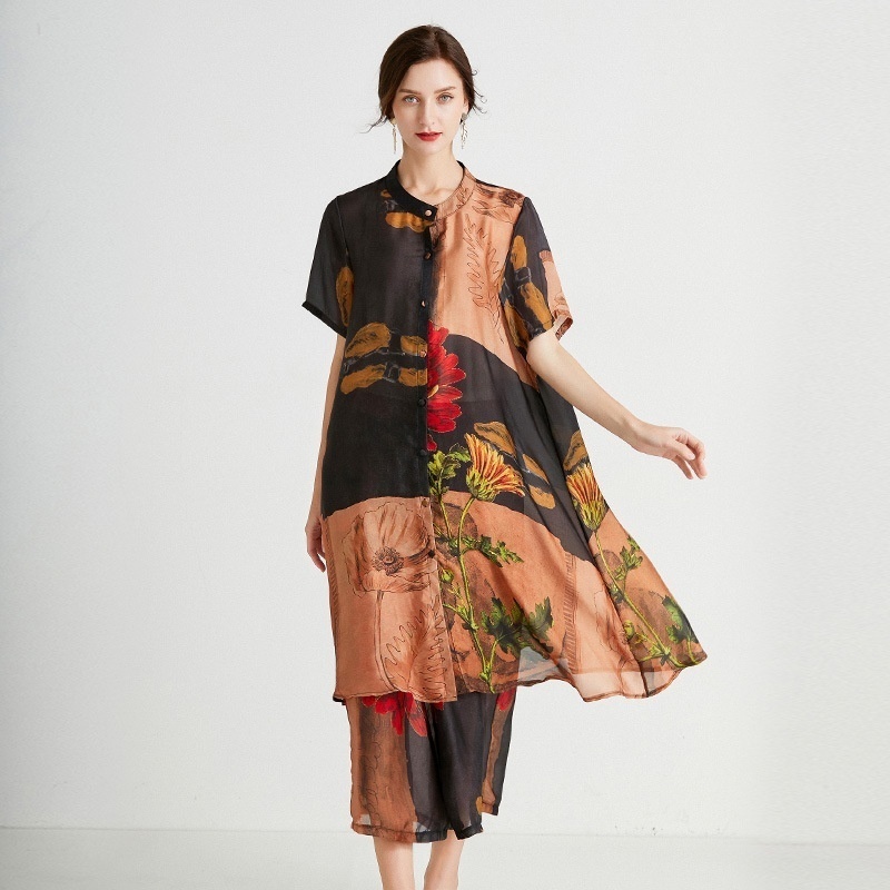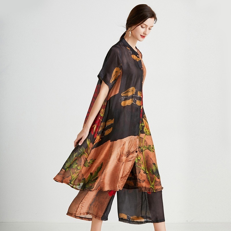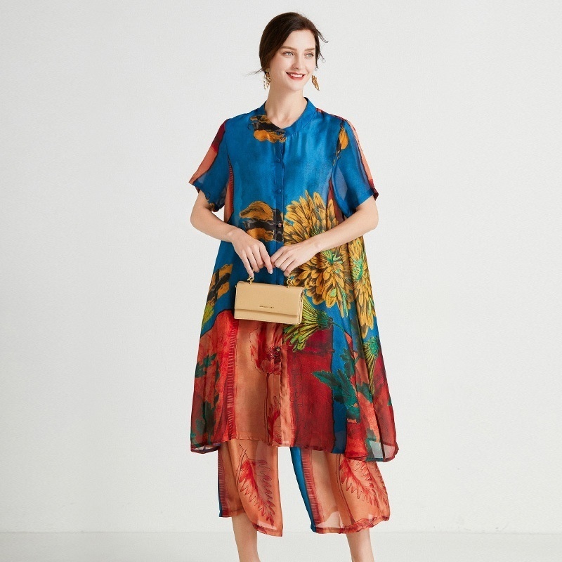 Wide-leg Pants Two-piece Suit Summer Style Casual Fashion Xiangyun Yarn Loose Slim Plus Size Women's Clothing
