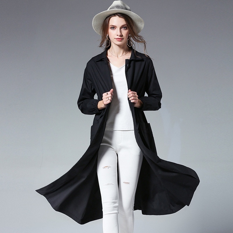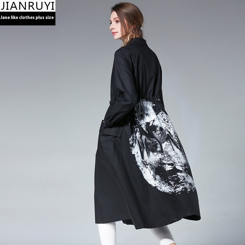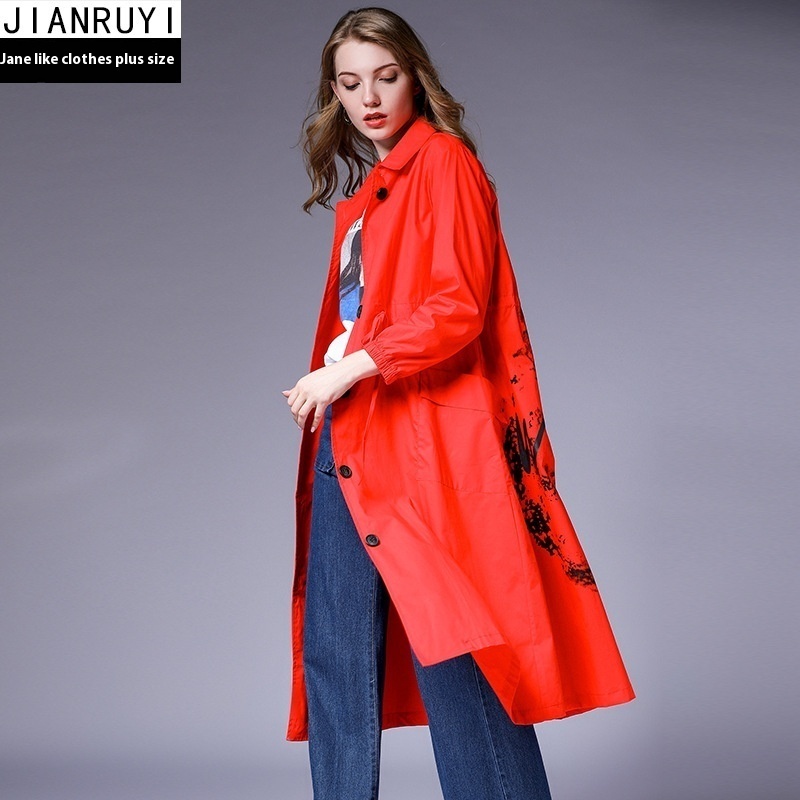 European And American Plus Size Women's Windbreaker Women's Mid-length Autumn Style Printed Waist Slimming Casual Temperament Jacket