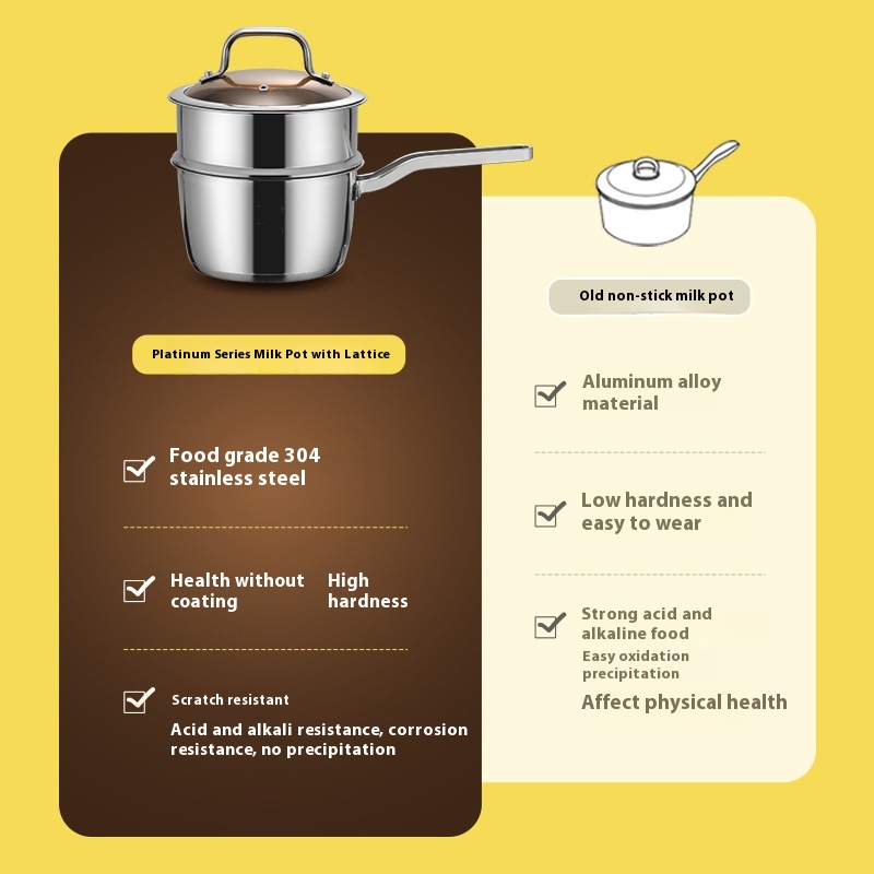不锈钢奶锅304食品级雪平锅加厚锅具双层泡面锅宝宝辅食锅小奶锅