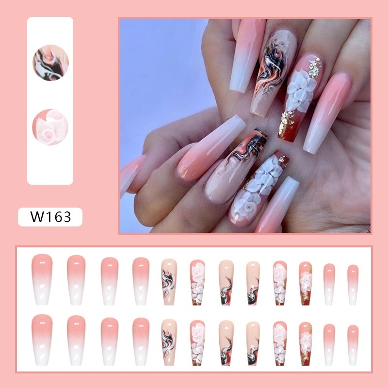 Foreign Trade Fake Nails Wearable Nail Art Pieces Summer Ballet Nail Nail Pieces24 Pieces Boxed Finished Products