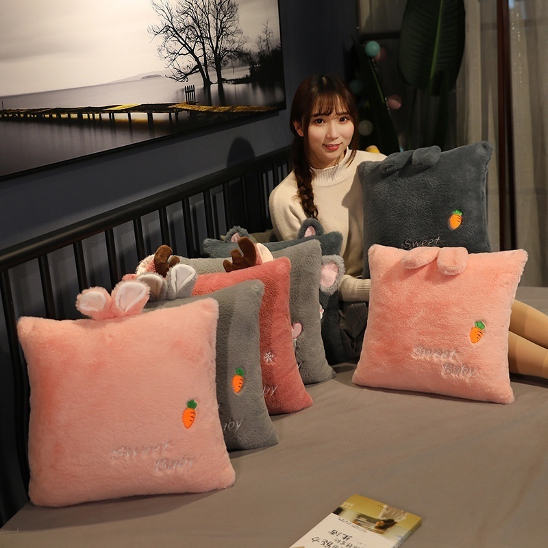 Removable And Washable Rabbit Plush Cylindrical Long Pillow Cute Long-eared Rabbit Plush Toy Home Long Pillow Cushion