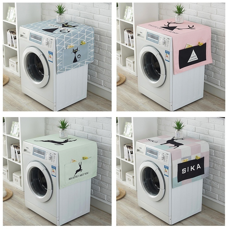 Nordic Elk Drum Washing Machine Cover Cloth Refrigerator Cover Cloth Cotton Linen Dust Cover Universal Bedside Table Cloth Cover