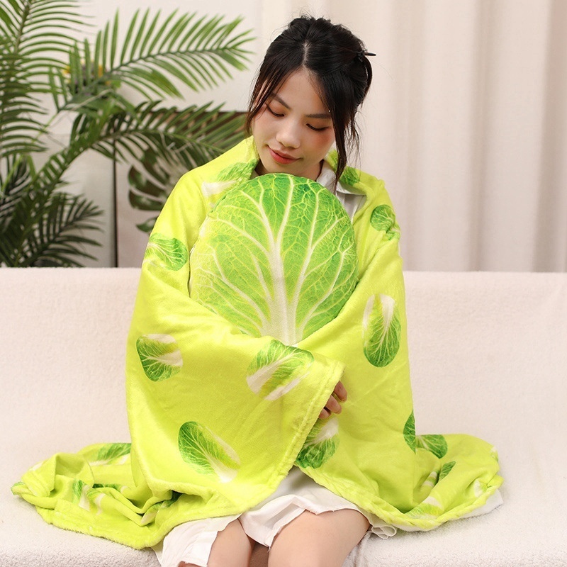Simulation Vegetable Pillow Quilt Dual-purpose Nap Pillow Office Cushion Folding Air Conditioning Pillow Coral Fleece Blanket
