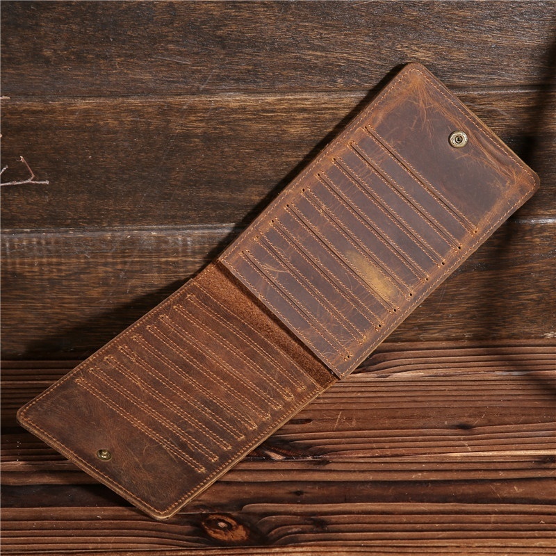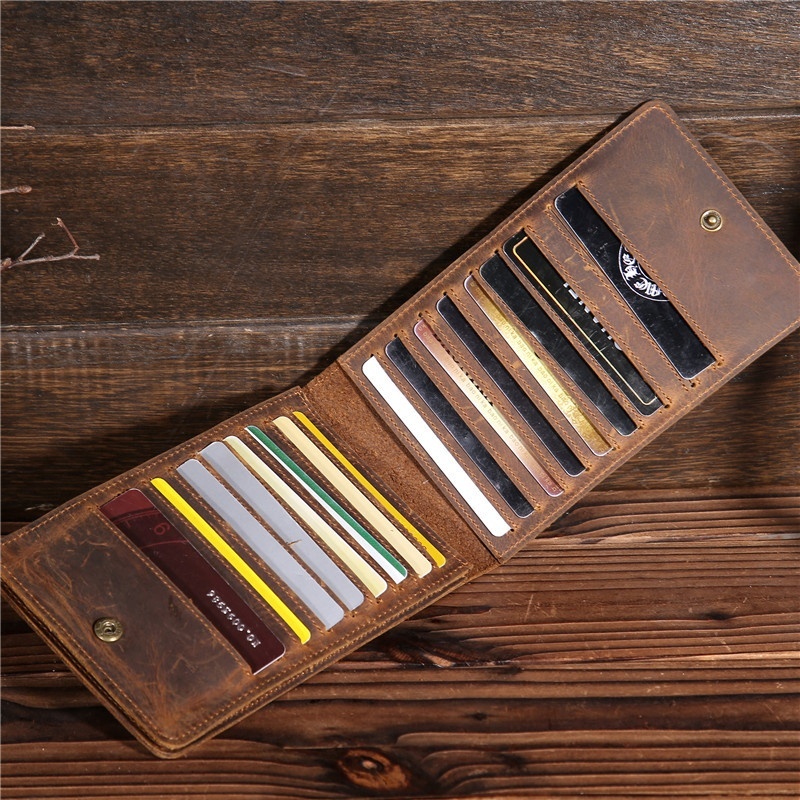 2077 Men's Long Phone Bag Wallet First Layer Cowhide Crazy Horse Card Bag Wallet Business Card Holder Large Card Holder Thin