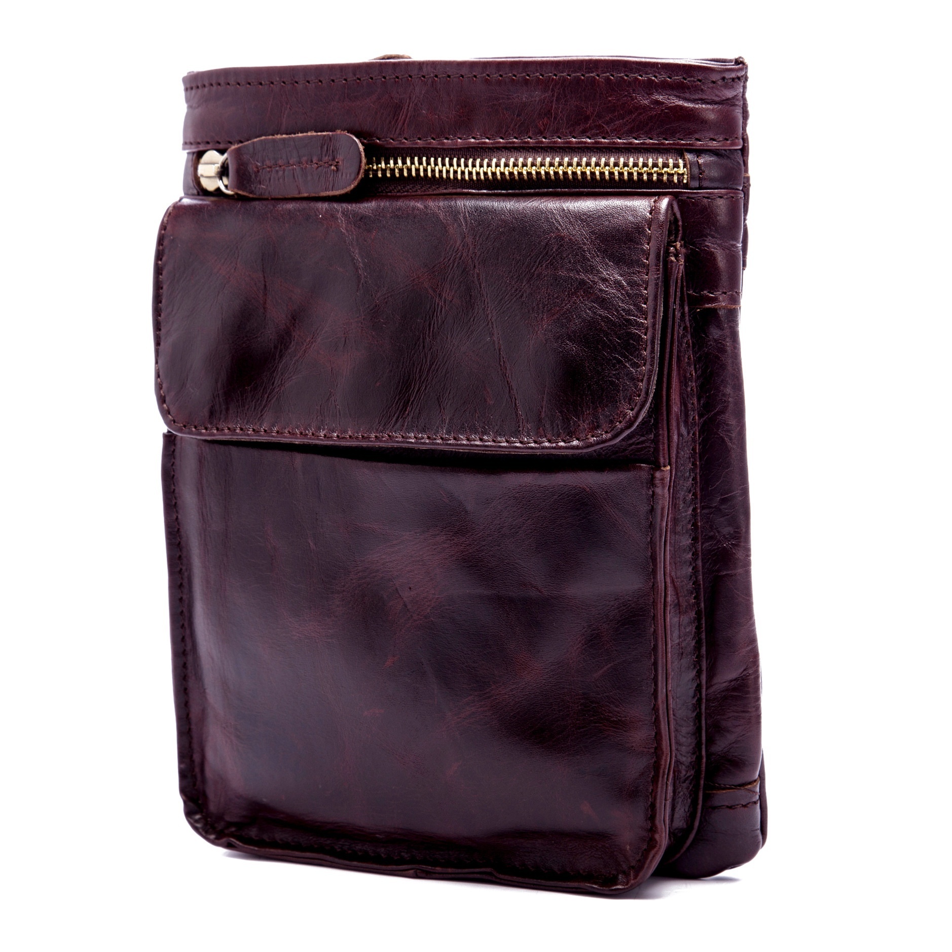 B594 Men's Genuine Leather Waist Bag Waxed Leather Shoulder Bag Trousers Hanging Bag Mobile Phone Bag Crossbody Bag Retro