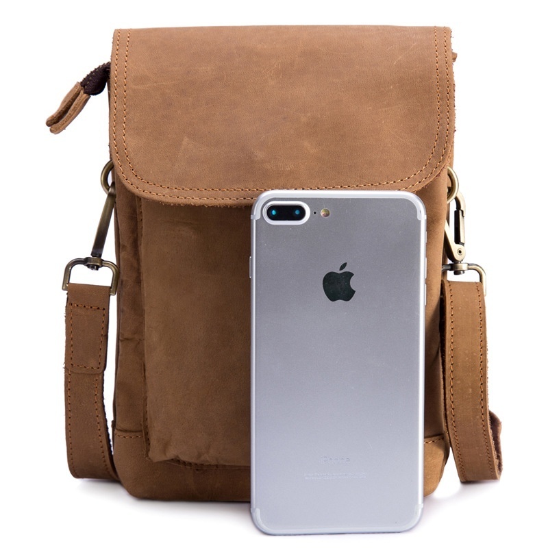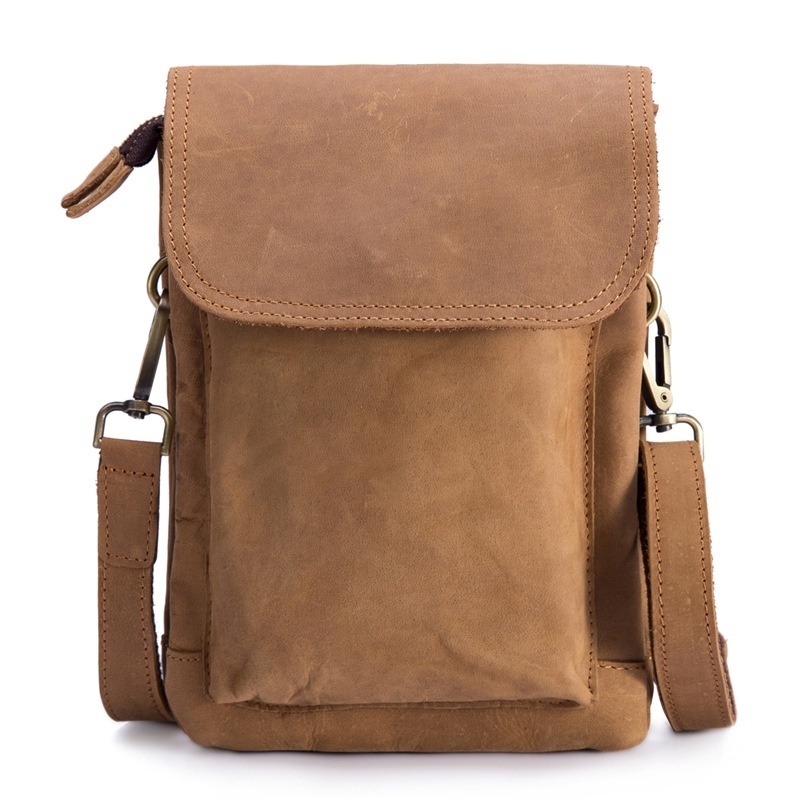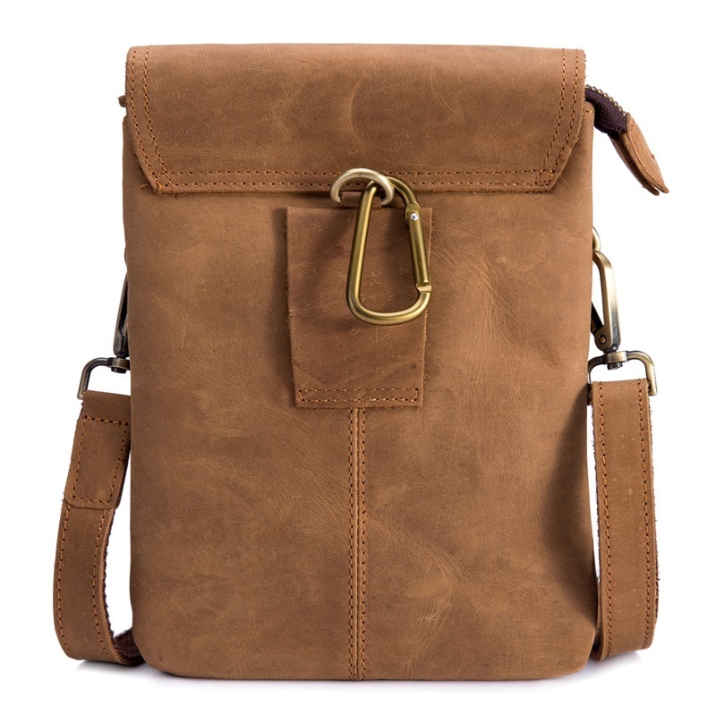 2019 Men's Crazy Horse Genuine Leather Waist Bag Waist Bag Waist Bag Waist Bag Cell Phone Bag Crossbody Bag Retro