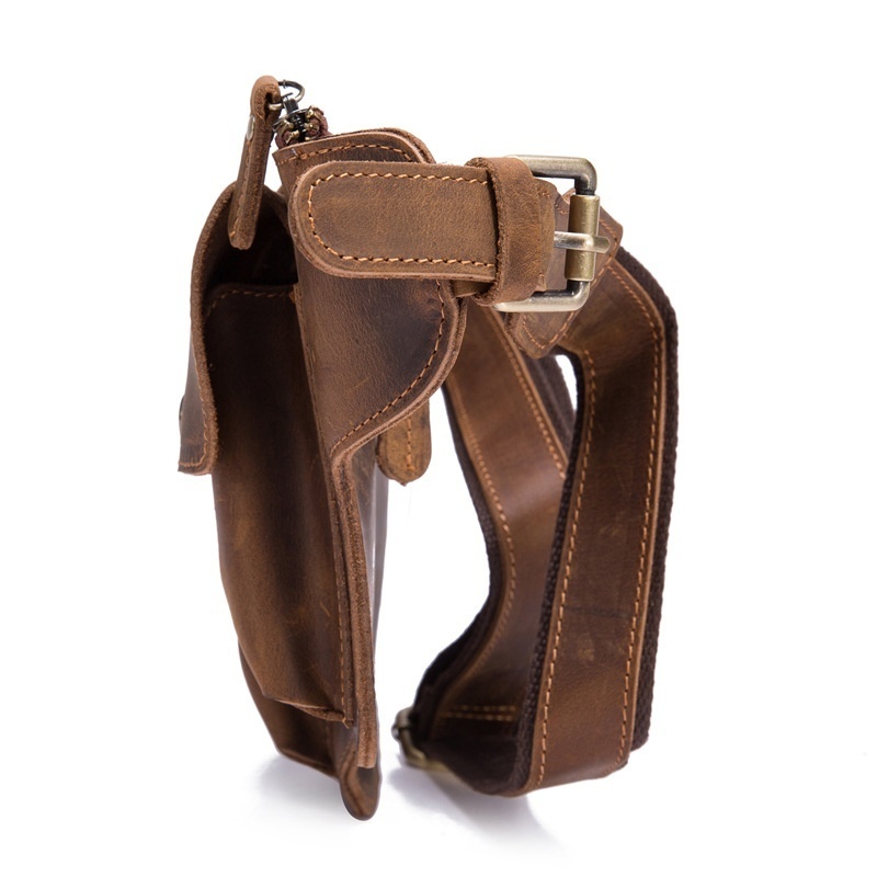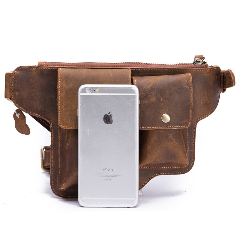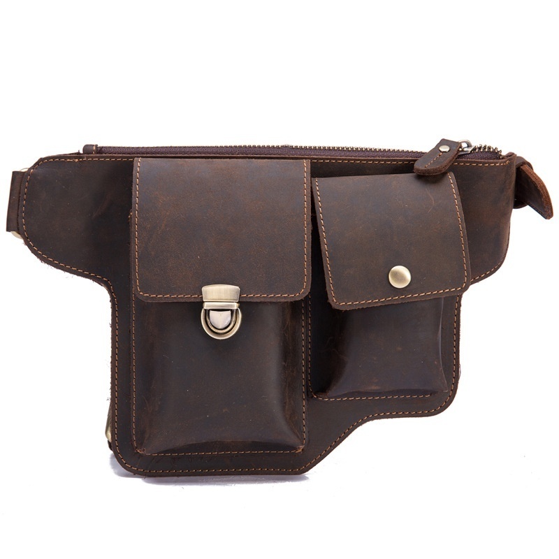 2068 Men's Genuine Crazy Horse Leather Waist Bag Crossbody Bag Wear Belt Waist Bag Ring Body Bag First Layer Cowhide Personalized Money Collection