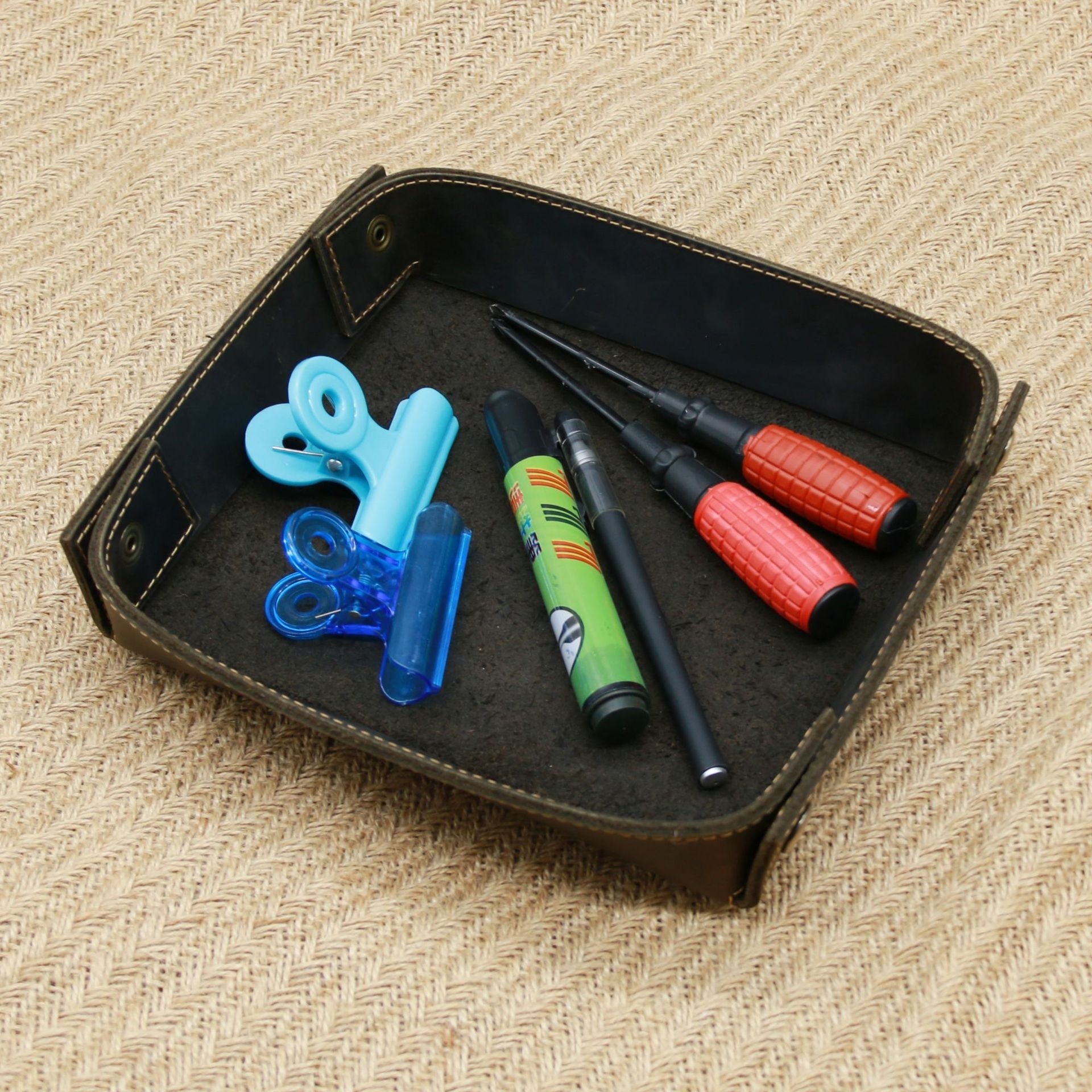 Crazy Horse Leather Studio Cosmetics Nail Art Hand Tool Knife Storage Desktop Organization Genuine Leather Storage Box Tray