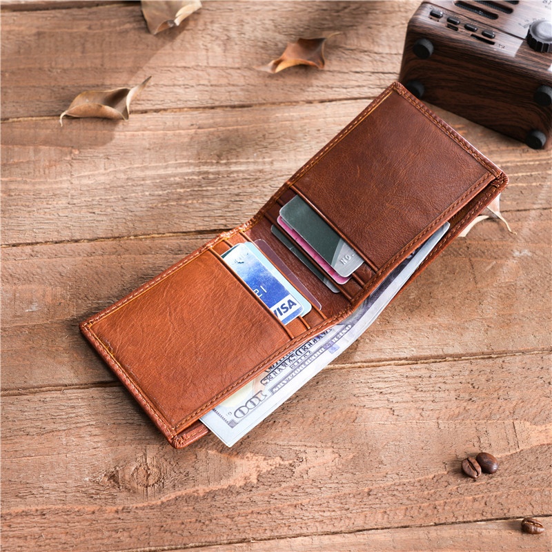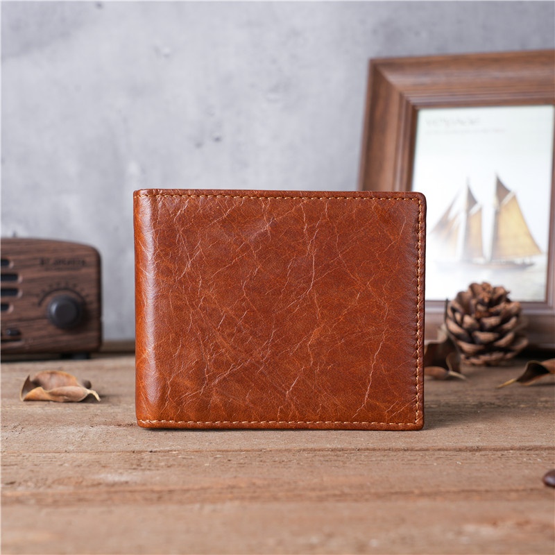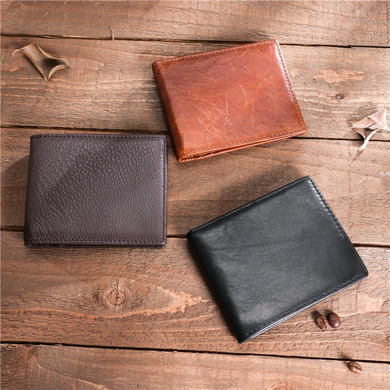 6092 Simple Top Layer Cowhide Men And Women Short Thin Retro Men's Genuine Leather Wallet Horizontal Multi-card Slot Wallet Card Holder