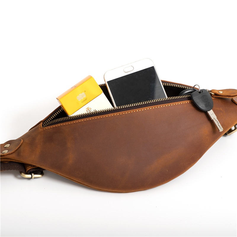 Cowhide Men's Waist Bag Genuine Leather Shoulder Bag Chest Bag Fashionable Soft Leather Fashion Sports Shoulder Bag