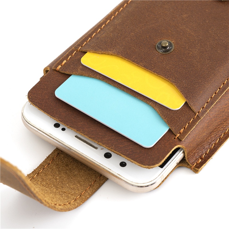 1090 Crazy Horse Leather Men's Mobile Phone Waist Bag First Layer Cowhide Outdoor Sports Retro Construction Site Bag