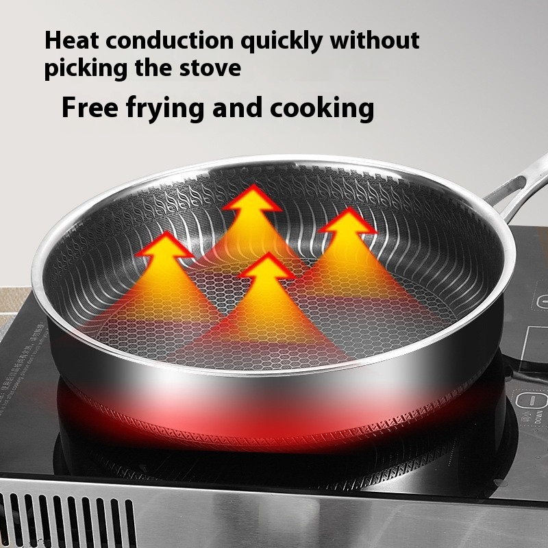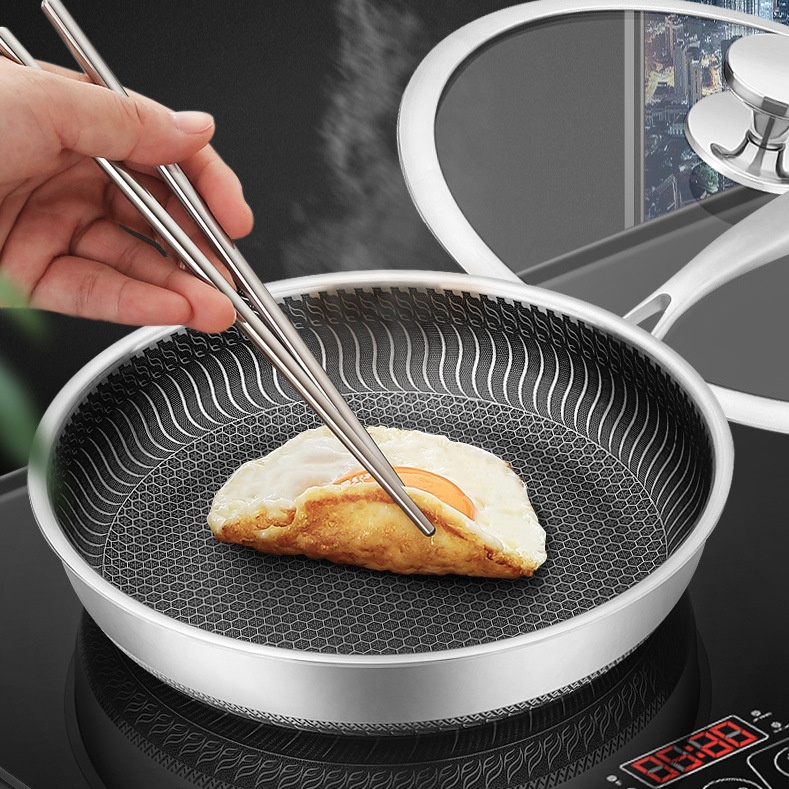 Stainless Steel Frying Pan With Lid, No Oil Smoke, Non-stick Pan, Household Uncoated Universal Steak Frying Pan