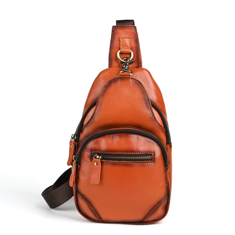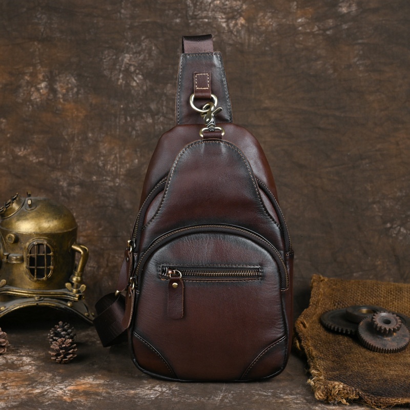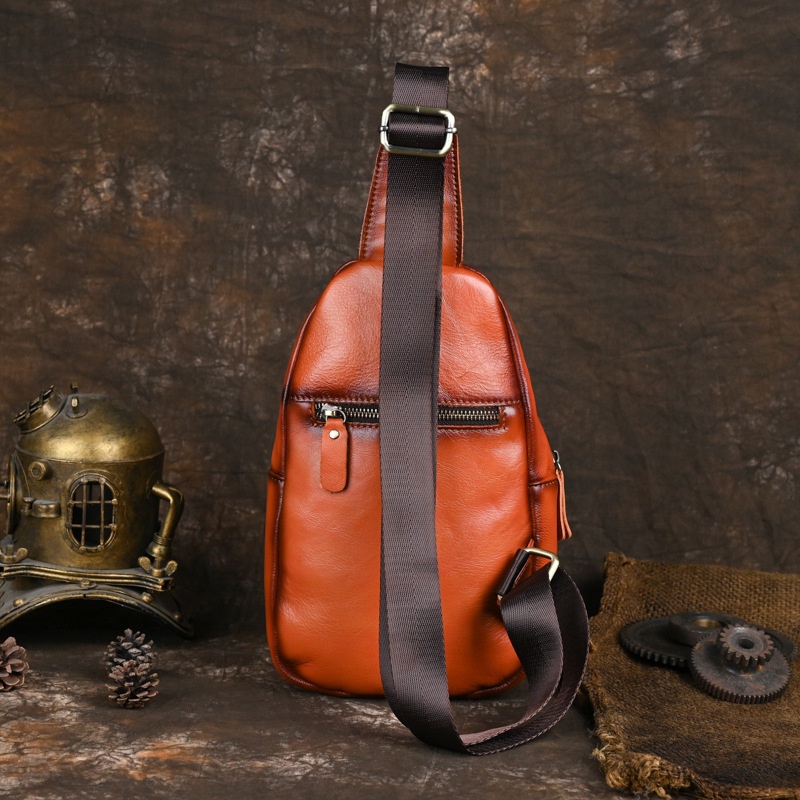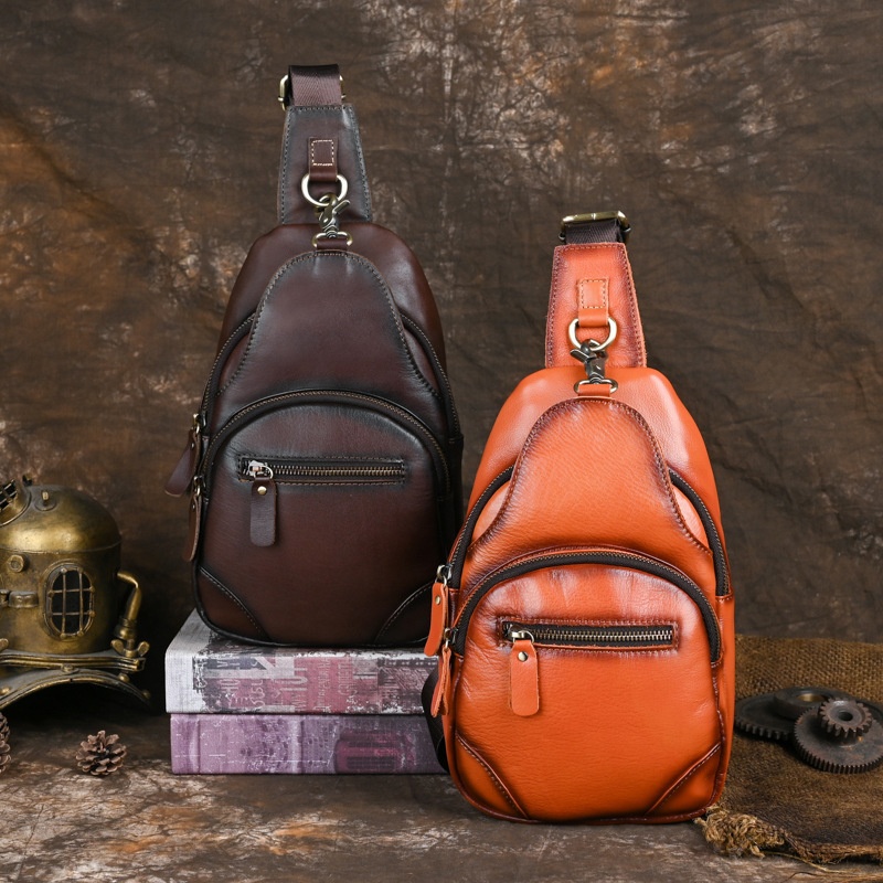 Retro Genuine Leather Chest Bag Women's First Layer Cowhide Shoulder Bag Fashion Messenger Bag Casual Chest Bag Korean Version Men And Women Bag