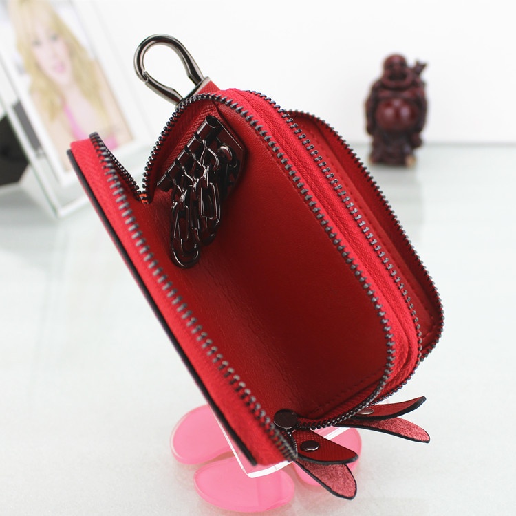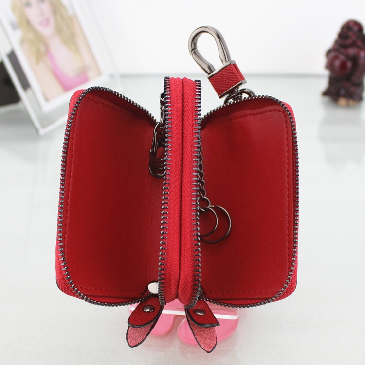 Cross-grain Leather Key Bag Multi-function Double-layer Zipper Key Bag Key Leather Case