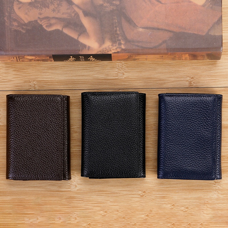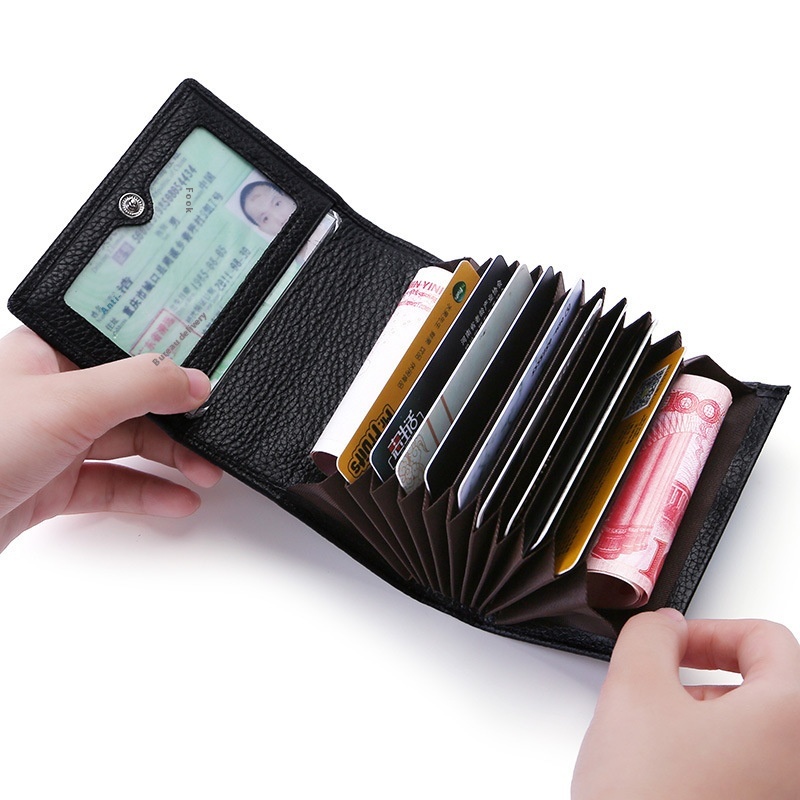 Direct Sale Genuine Leather Tri-fold Card Holder Cowhide Credit Card Holder Multi-card Slot Business Card Holder Zipper Card Holder Card Holder