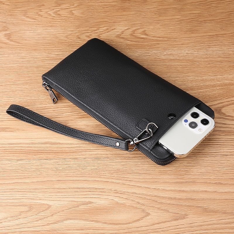 Douyin Top Layer Cowhide Clutch Bag Fashionable Card Holder Mobile Phone Bag Genuine Leather Multifunctional Long Wallet