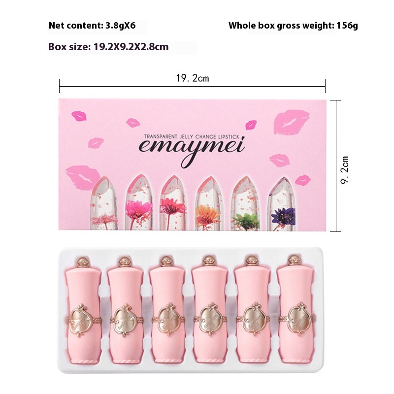 [6 Pieces] Transparent Moisturizing Jelly Dried Flower Temperature-changing Lipstick Moisturizing Crystal Clear Color-changing Lipstick Set