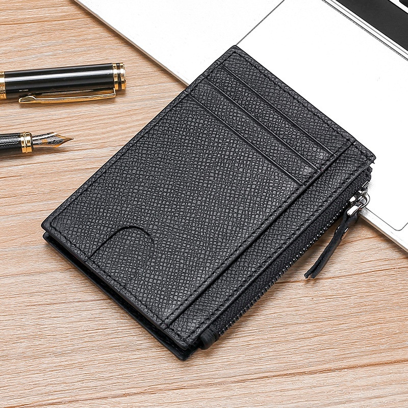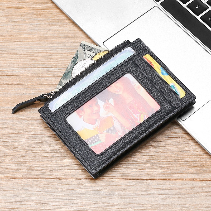 Genuine Leather Mini Ultra-thin Card Holder Card Holder RFIDAnti-magnetic Cowhide Card Holder Zipper Coin Purse