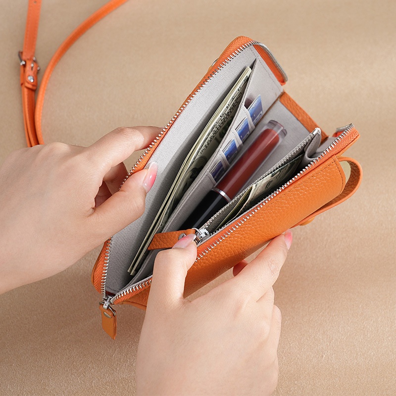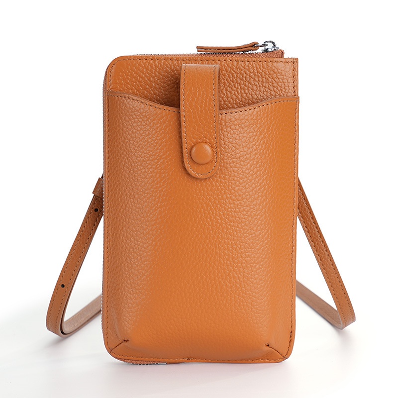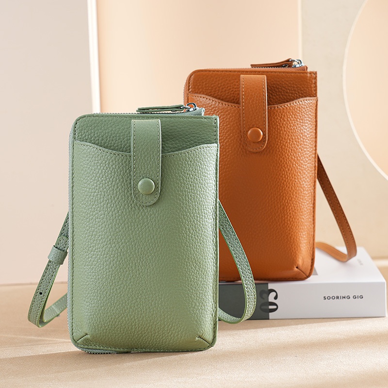 Genuine Leather Mobile Phone Bag Women's Crossbody Small Bag Lychee Pattern One-shoulder Versatile Mobile Phone Coin Purse Simple Small Shoulder Bag