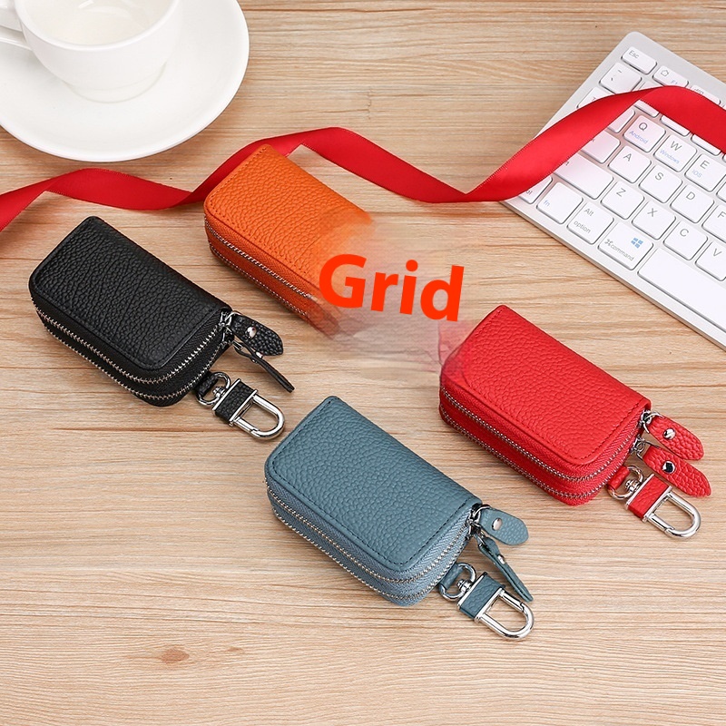 Japanese Style Double Zipper Genuine Leather Car Key Bag Cowhide Key Protection Cover Cow Neck Pattern Coin Purse Car Key Cover