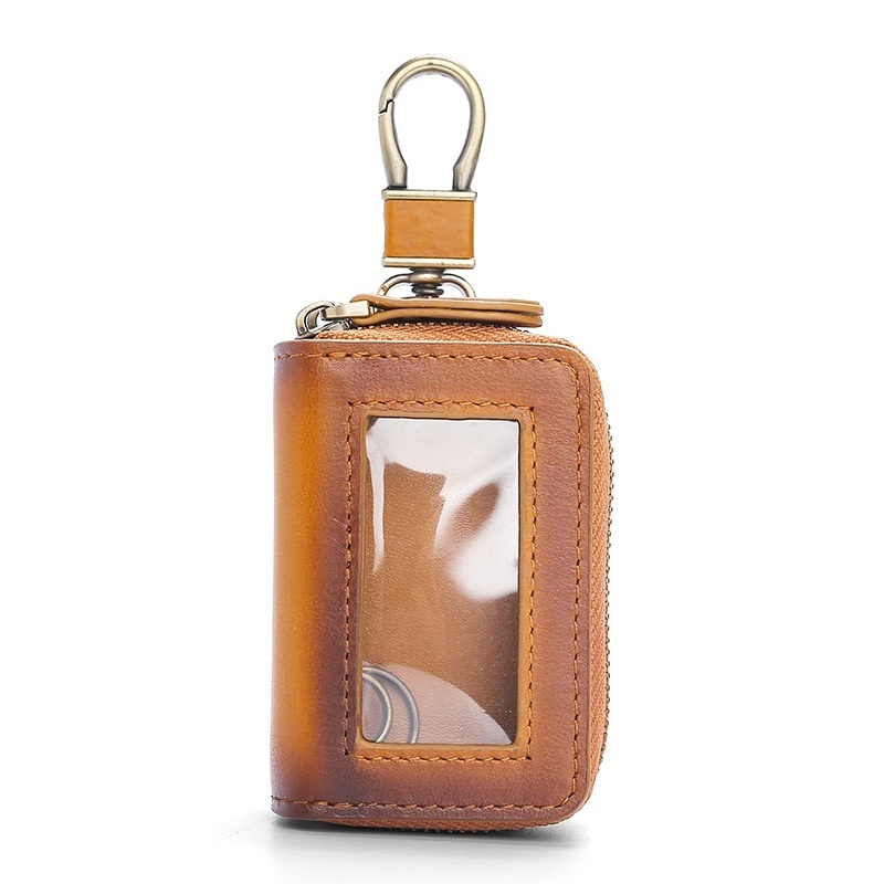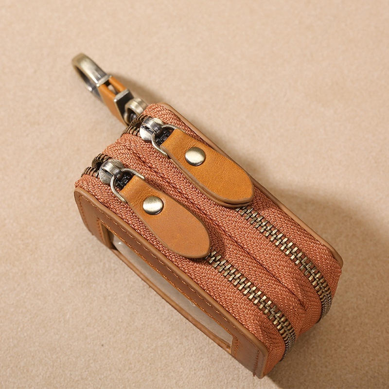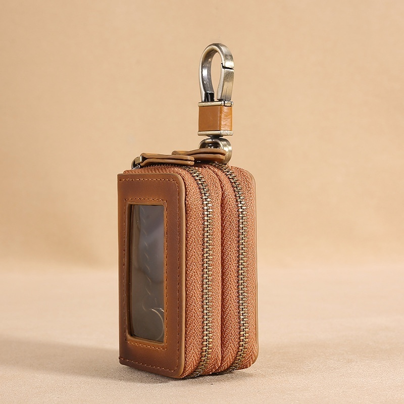 Top Layer Cowhide Car Key Bag Double Zipper Universal Genuine Leather Car Key Protection Leather Case Men's Key Bag