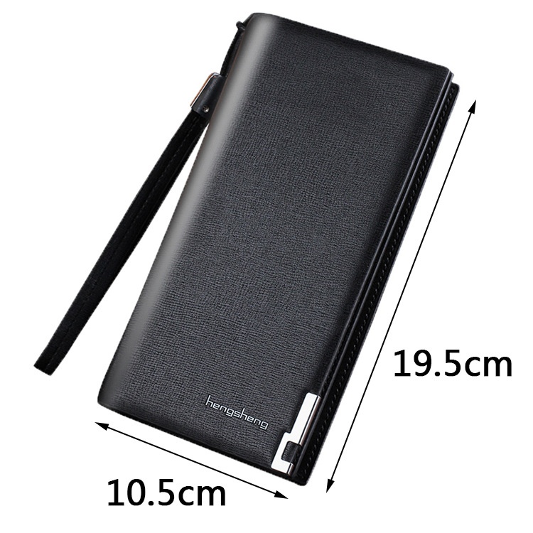 Hengsheng Wallet Men's Long Zipper Wallet Men's Wrist Strap Snap Button Hand-held Mobile Phone Bag Large Capacity