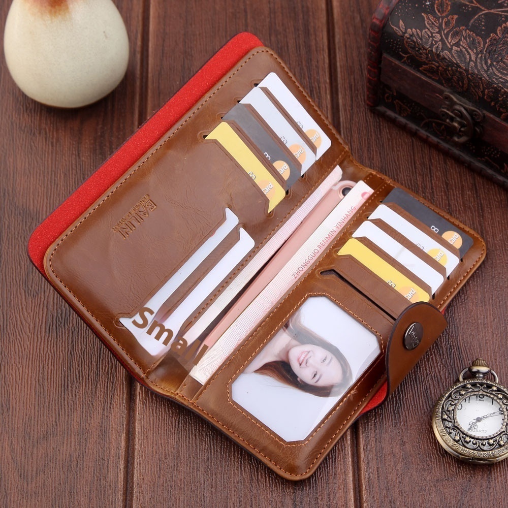 Men's Wallet Long Dollar Clip Retro Suit Bag Leather Men's Button Bag Wallet Men