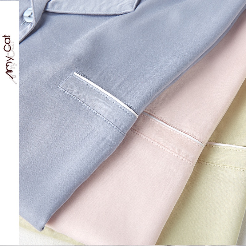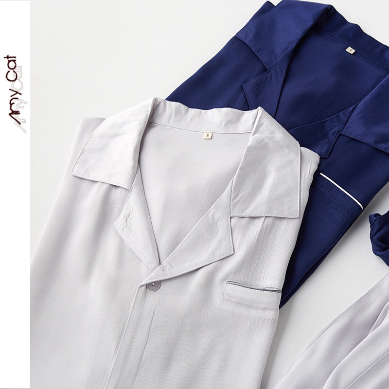 Miximao Couple Style Rayon Korean Style Casual Satin Solid Color Large Pocket Long Sleeve Pajamas Set T