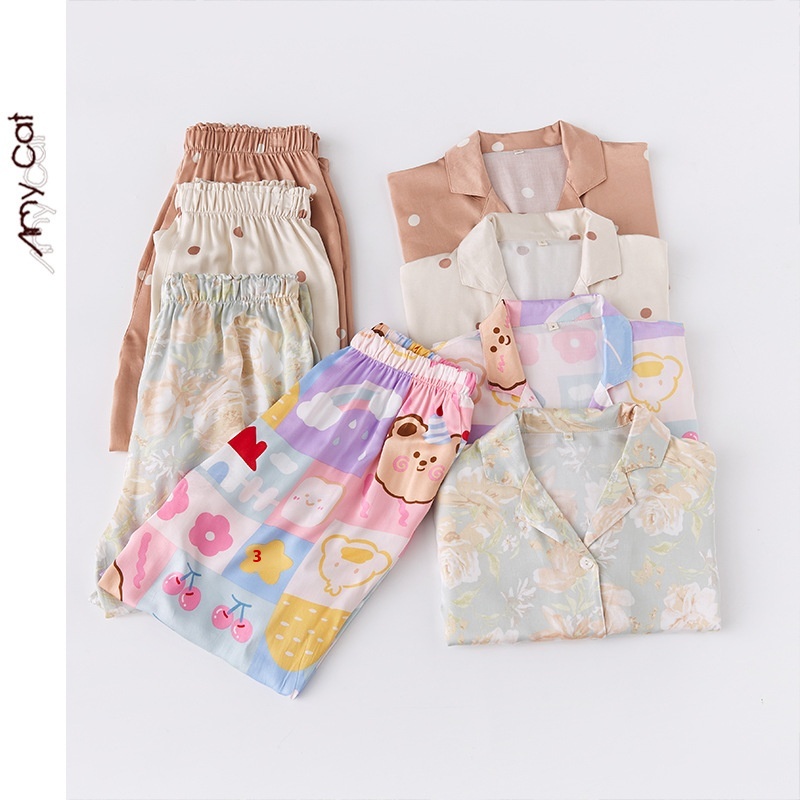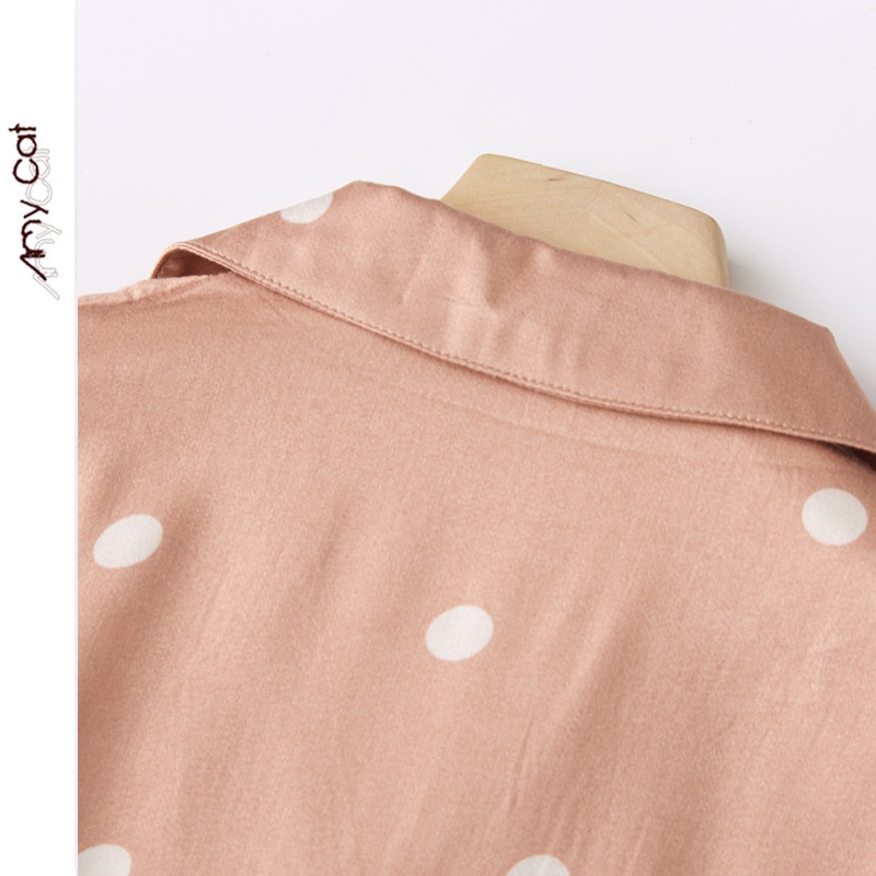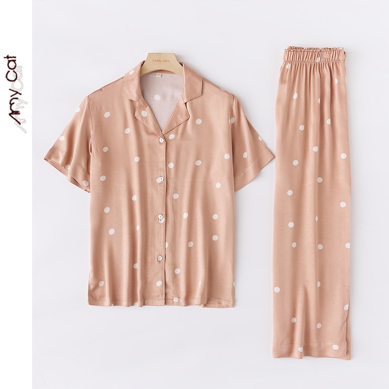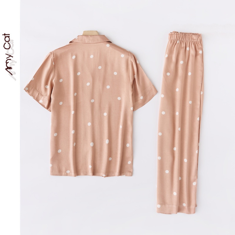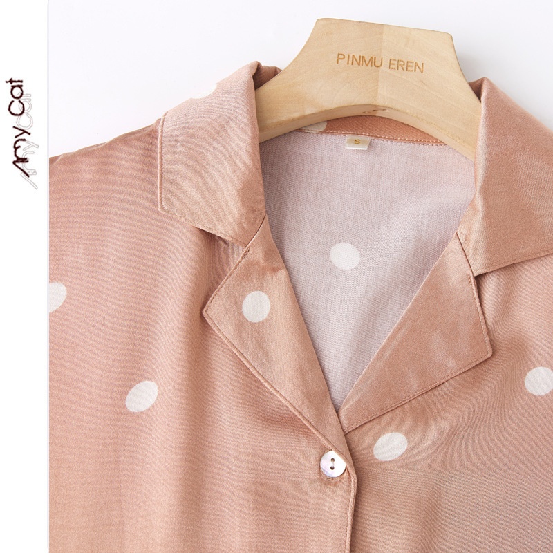 Mixi Cat Cotton Summer Thin Cute Cartoon Satin Coffee Dot Lapel Short-sleeved Trousers Home Clothes7 T