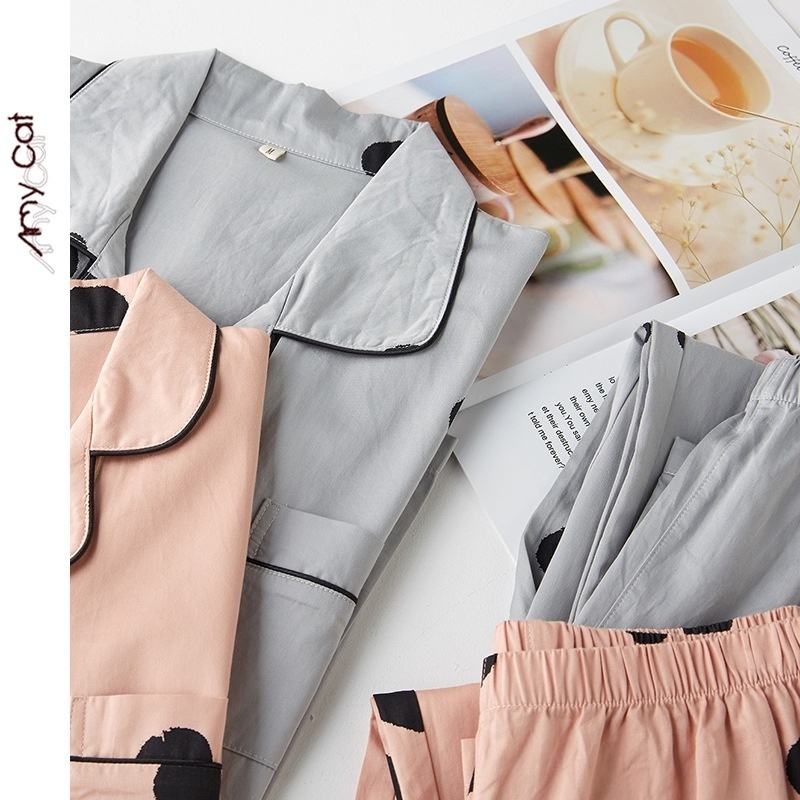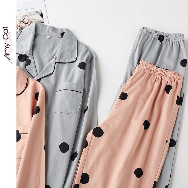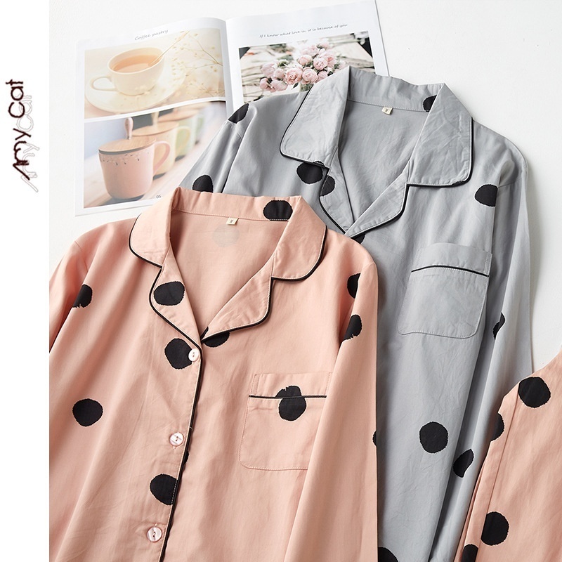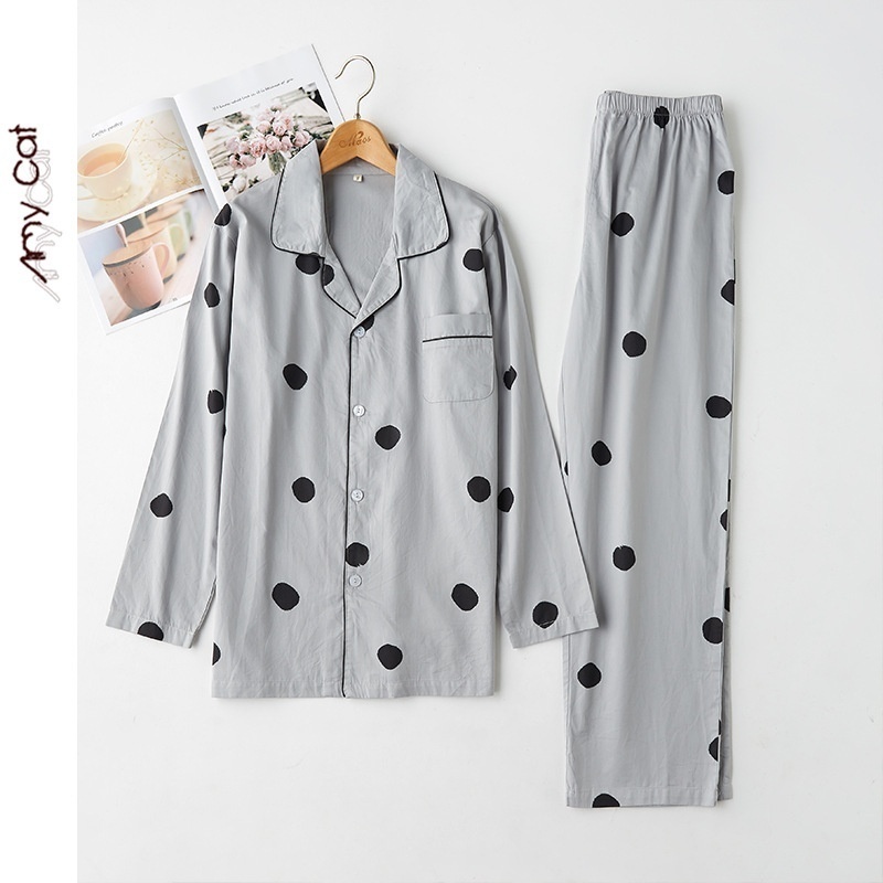 Miximao Pure Cotton Satin Cotton Polka Dot Spring Thin Pajamas Men's Home Clothes Two-piece Suit T