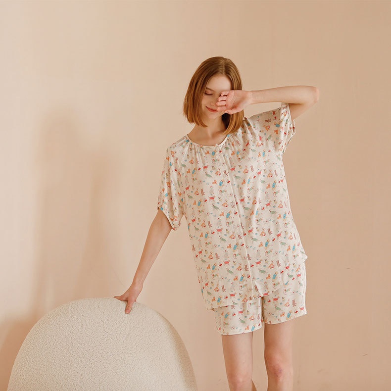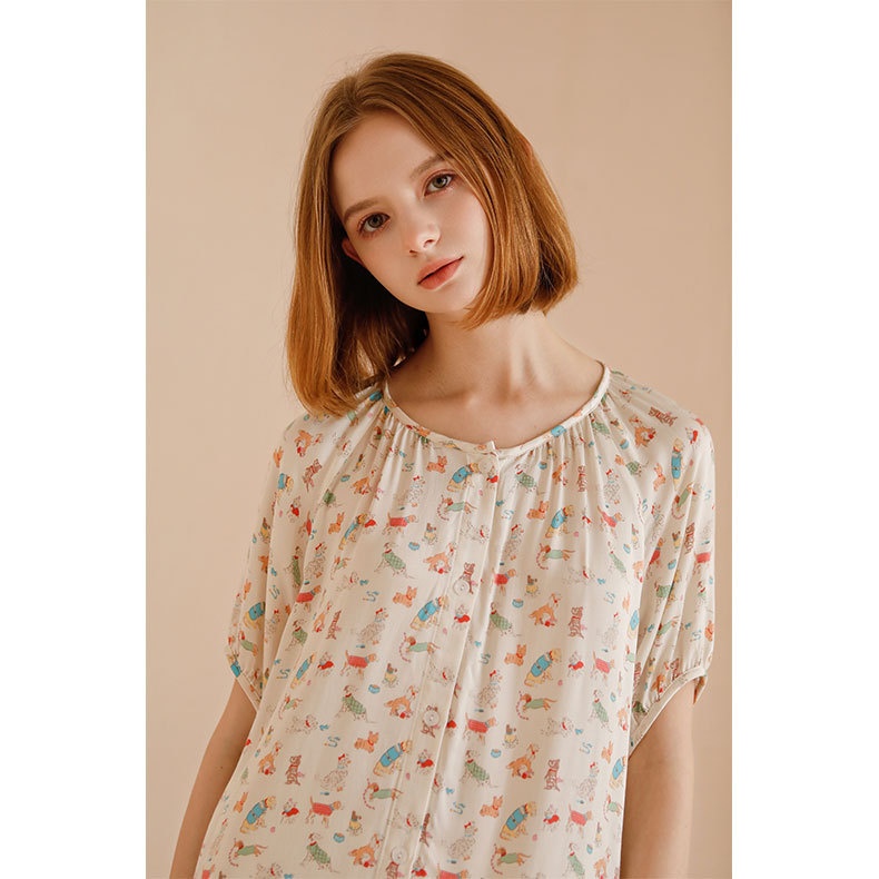 Multi-color Printed Cotton Satin Women's Home Clothes