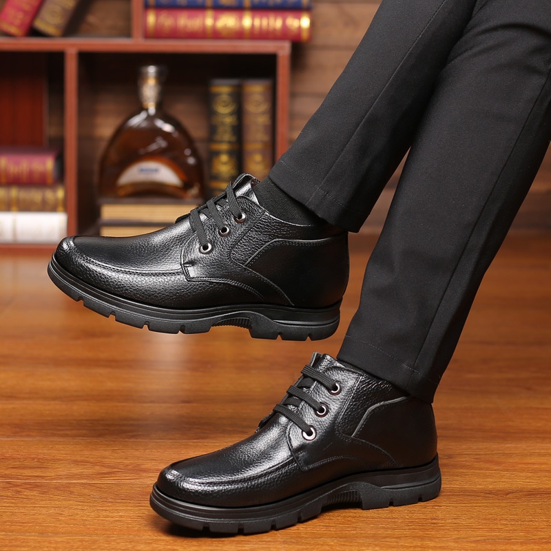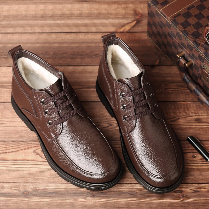 Winter Men's Shoes Genuine Leather Plus Velvet Thickened Warm Cold-proof Non-slip Outdoor Casual Leather Shoes Men's Cotton Shoes