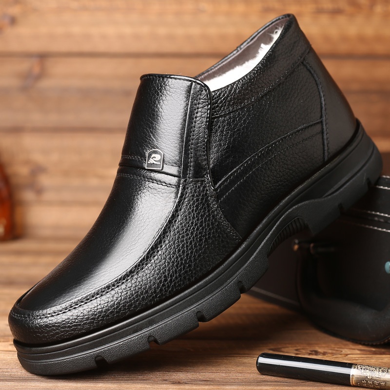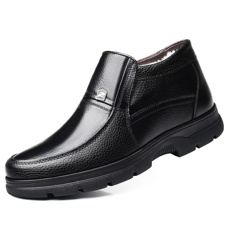Winter High-top Shoes For The Elderly Genuine Leather Warm Plus Velvet Cotton Shoes Men's Casual Leather Shoes Middle-aged Dad Shoes