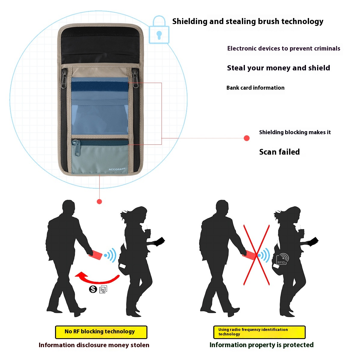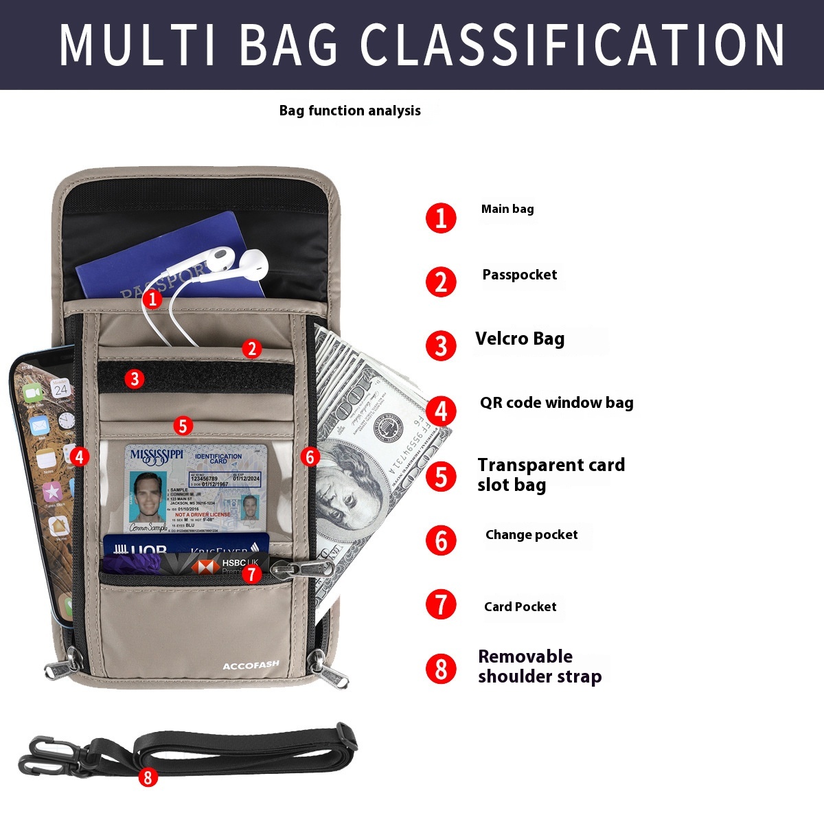 Document Holder Travel Neck Hanging Multi-functional Passport Holder Waterproof R F I D Passport Bag Passport Bag