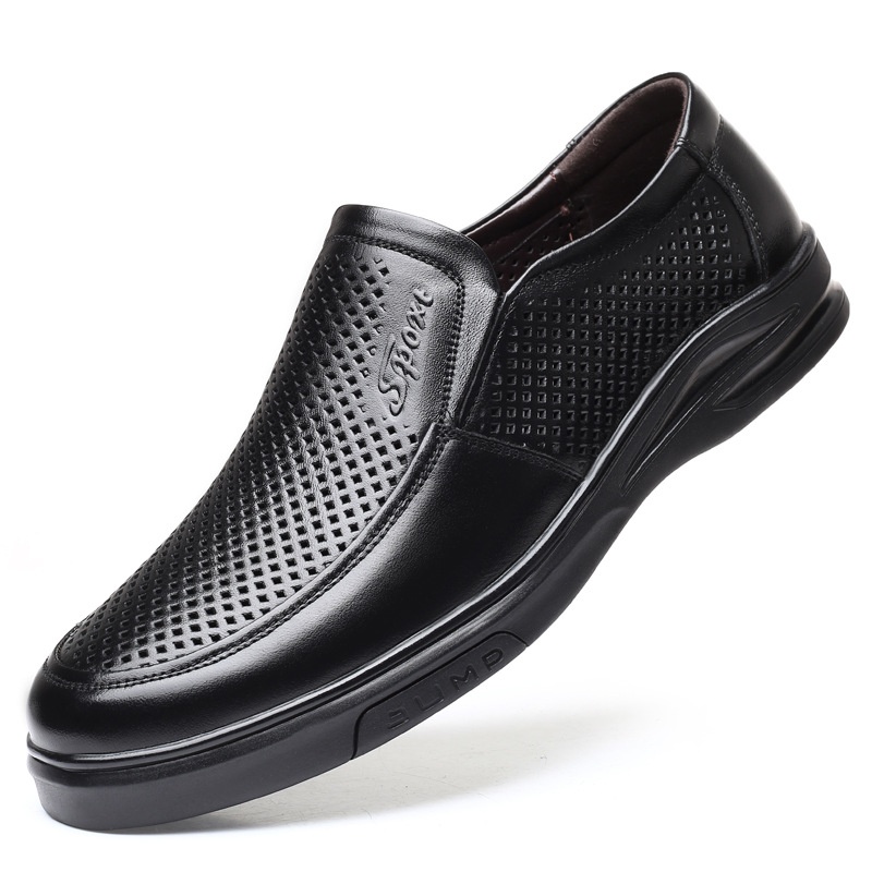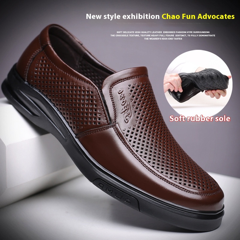 Men's Leather Shoes Summer Breathable Hollow Sandals Men's Genuine Leather Middle-aged And Elderly Casual Shoes Soft Bottom Non-slip Dad Shoes