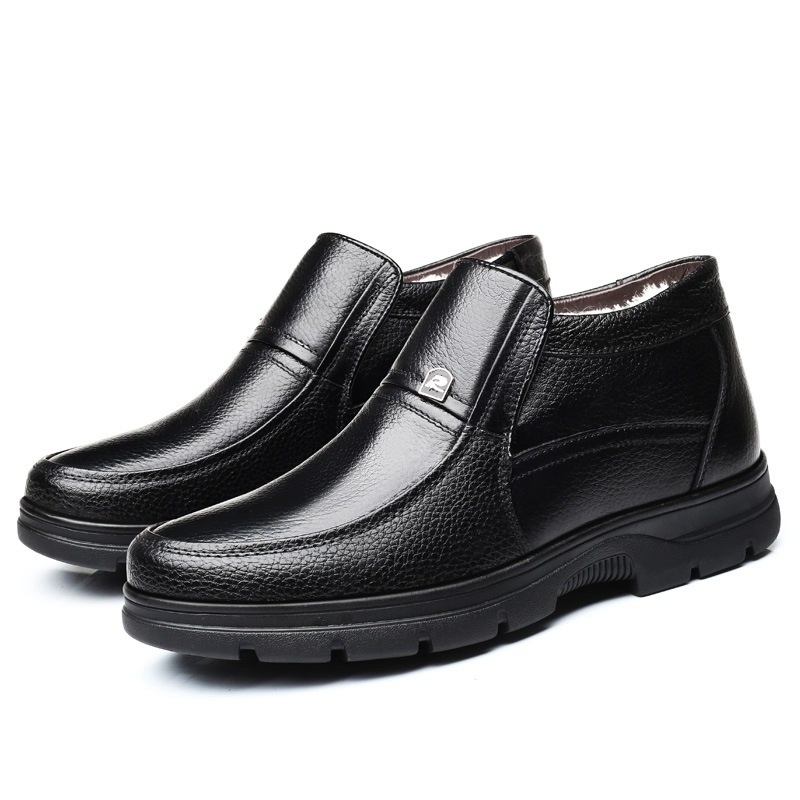 Middle-aged And Elderly Men's Winter High-top Cotton Shoes Extra Large Size Casual Leather Shoes Genuine Leather Plus Velvet Warm Dad Shoes