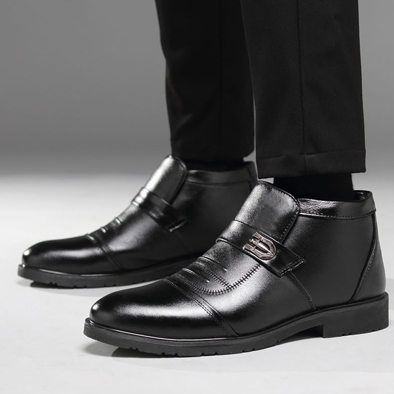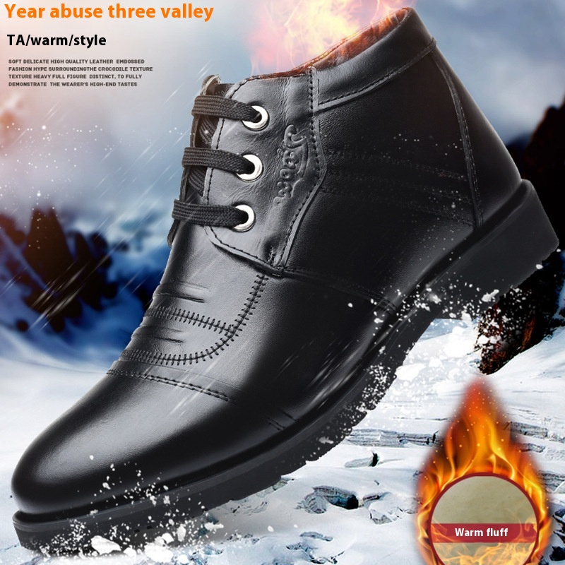 Winter Warm Plus Velvet Business Genuine Leather Men's Shoes First Layer Cowhide Men's Cotton Shoes Middle-aged And Elderly High Top Daddy Shoes