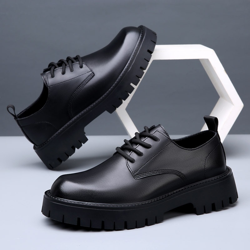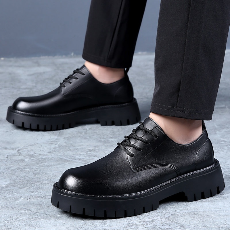 Spring Men's Shoes Cowhide Middle-aged All-match Lace-up Thick-soled Casual Leather Shoes Men's Single Shoes