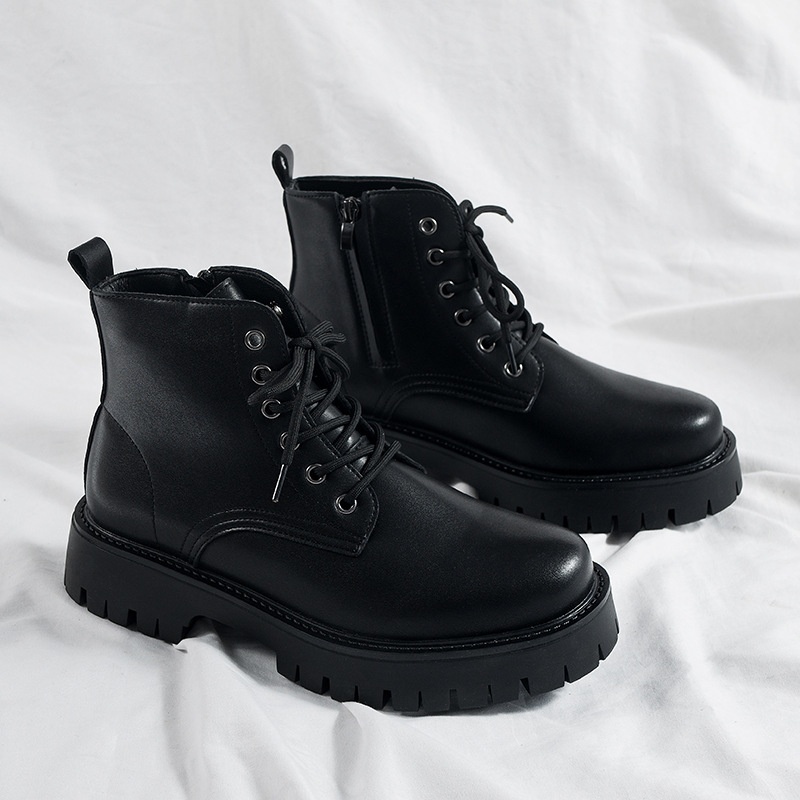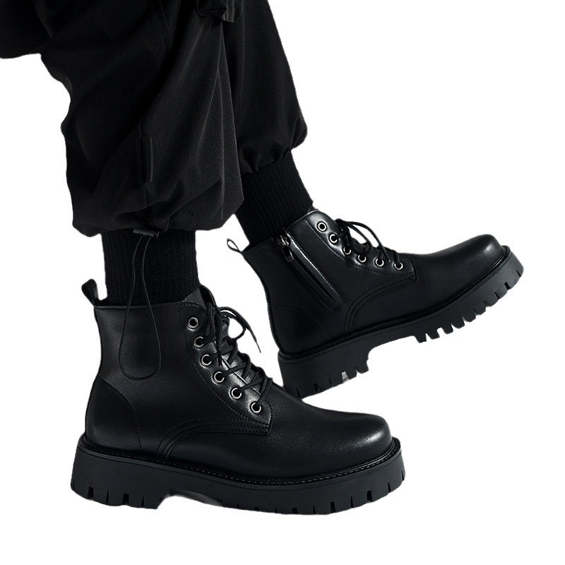 Martin Boots Men's British Style High-top Boots Genuine Leather Mid-top Leather Shoes Black Workwear Chelsea Short Boots