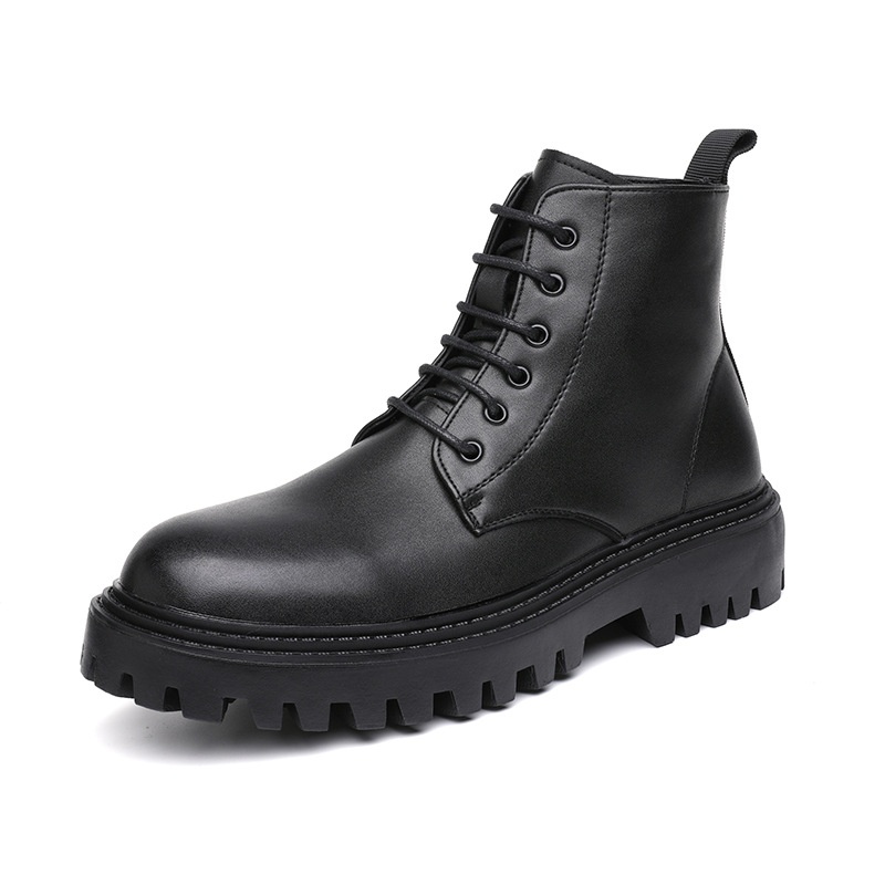 Martin Boots Men's British Style High-top Boots Genuine Leather Mid-top Leather Shoes Black Workwear Chelsea Short Boots