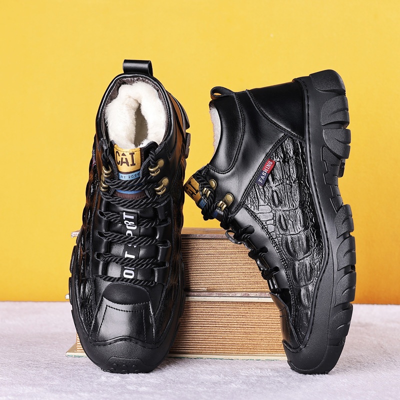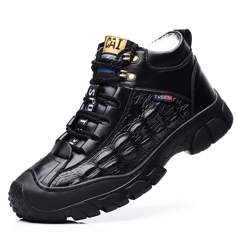 Winter Men's Cotton Shoes Genuine Leather Warm Plus Velvet Thickened Sports Leisure Wool Fur High Top Snow Boots Men