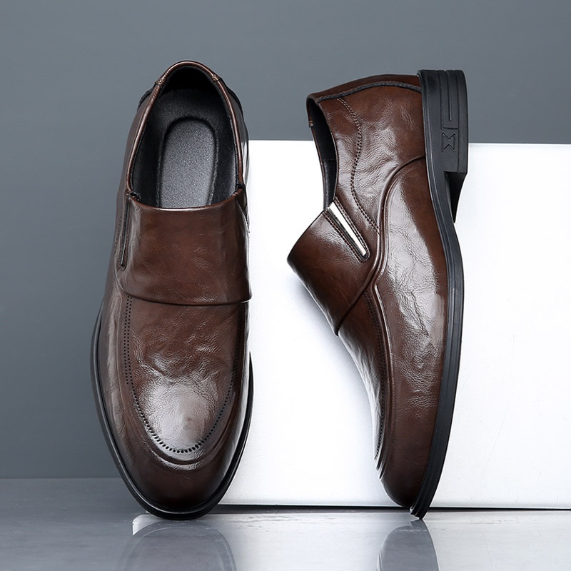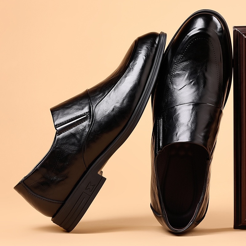 Autumn Men's Shoes Genuine Leather Casual Shoes Men's Business Formal Soft Sole Breathable Inner Height-increasing Single Shoes Pointed Toe Slip-on