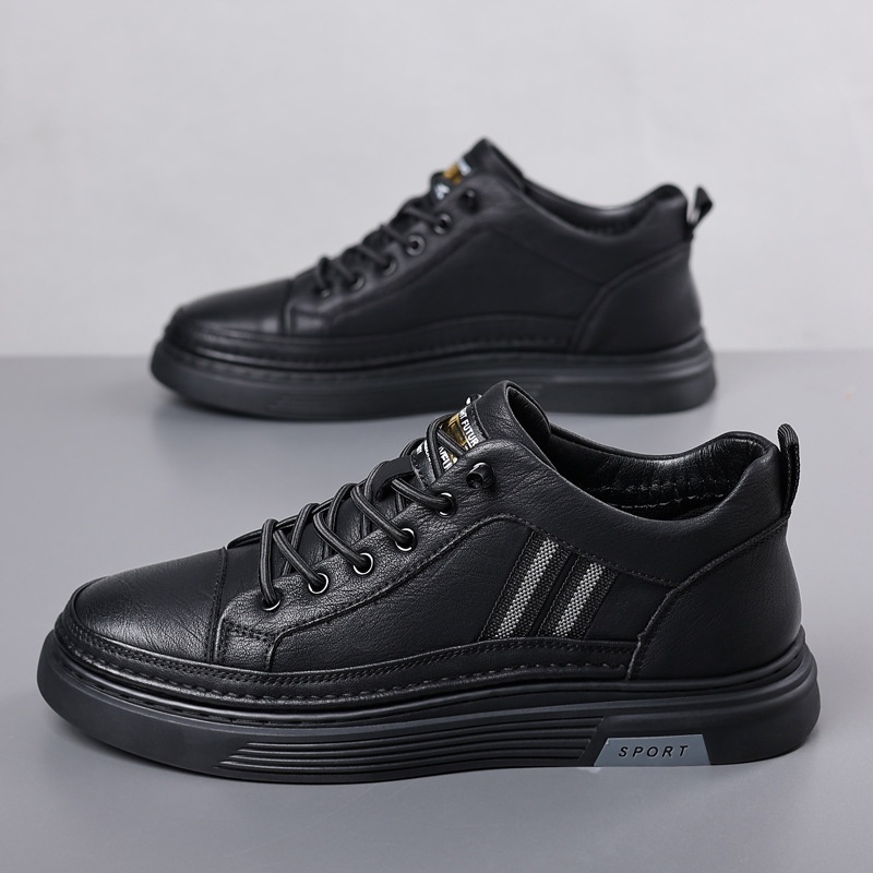 Men's Autumn Leather Shoesy Soft Sole Men's Casual Shoes Winter Plus Velvet Cotton Shoes Black Sports All-match Sneakers