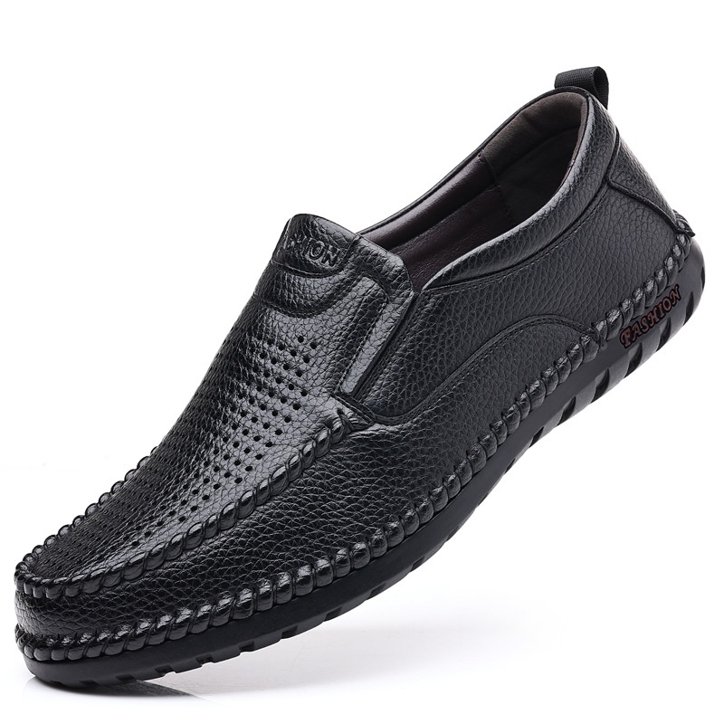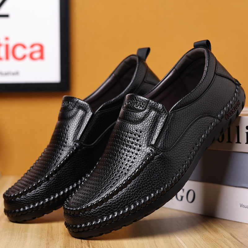 Leather Sandals Men Genuine Leather Hollow Sandals Men's Casual Slip-on Top Layer Cowhide Middle-aged And Elderly Dad Shoes