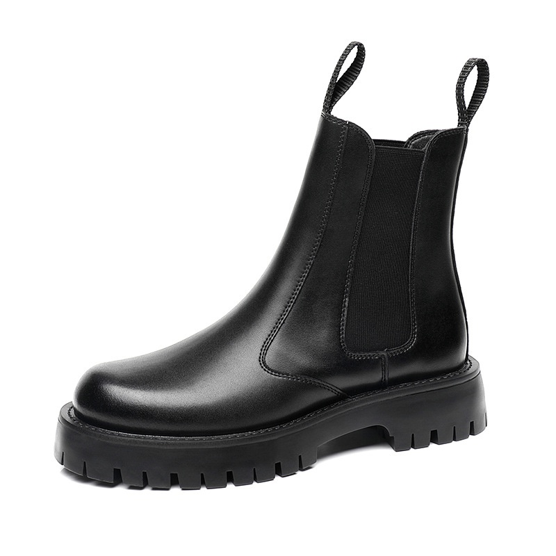 Winter Plus Velvet Martin Boots For Men Korean Chelsea Boots Men's Height-increasing Cigarette Boots British Thick-soledy High-top Leather Boots