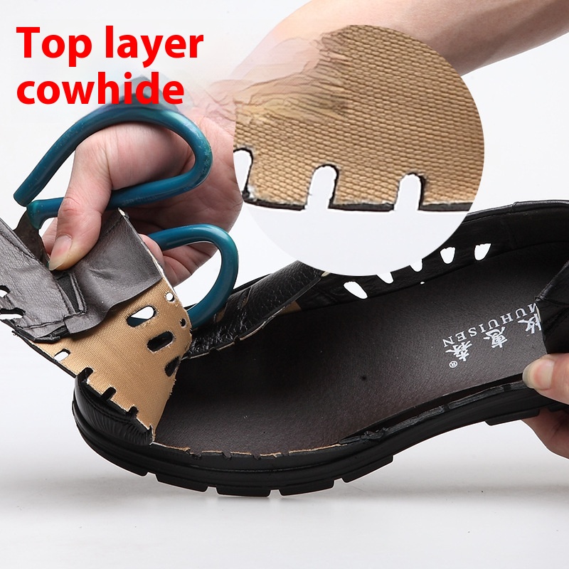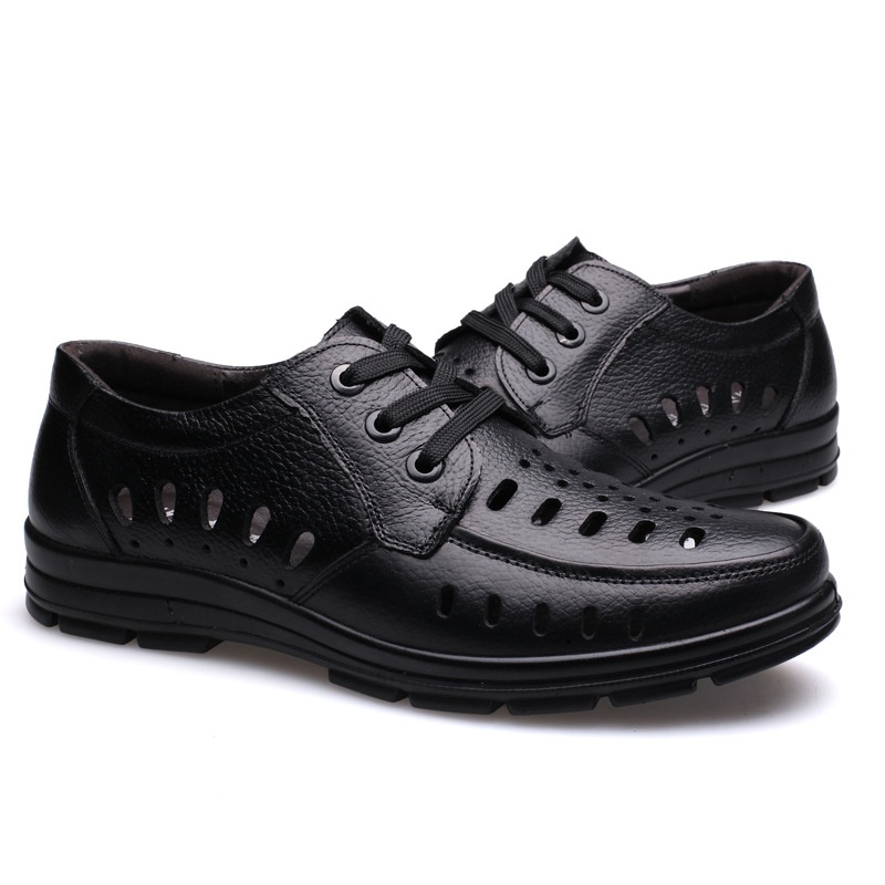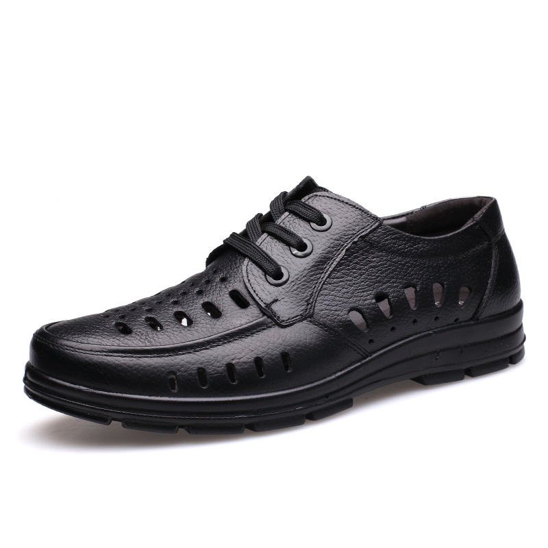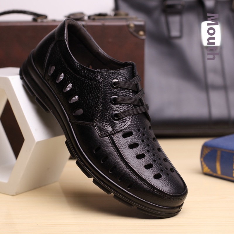 Summer Business Leather Shoes Cowhide Dad Shoes Men Hollow Hole Shoes Middle-aged And Elderly Leather Sandals Casual Shoes Men's Shoes