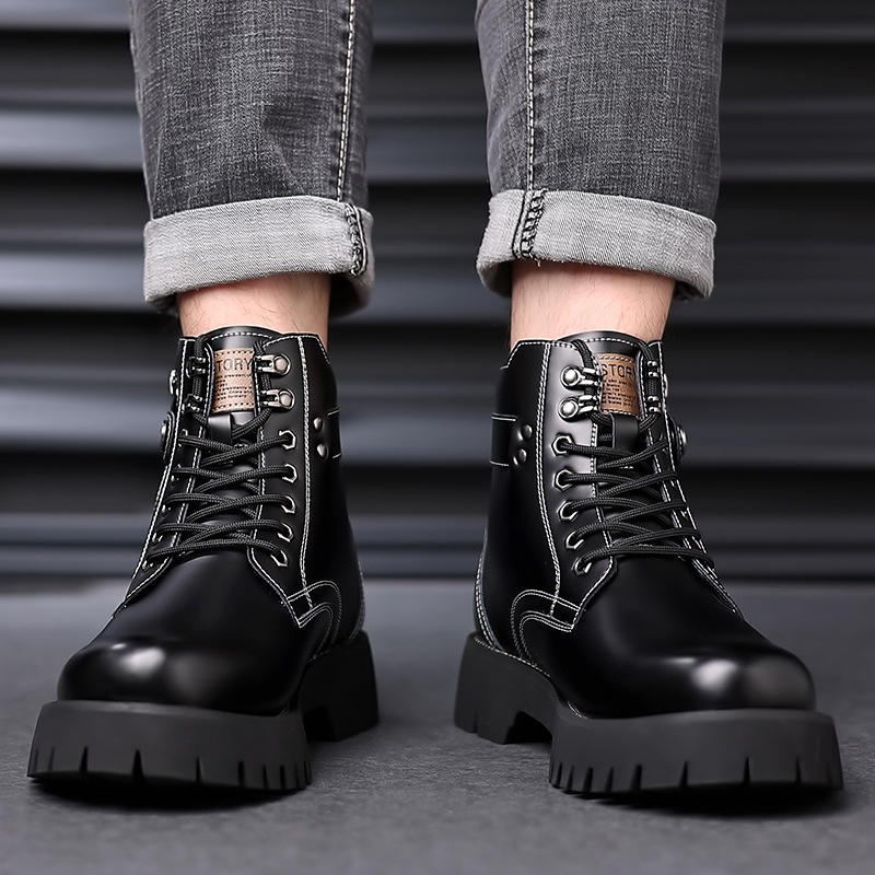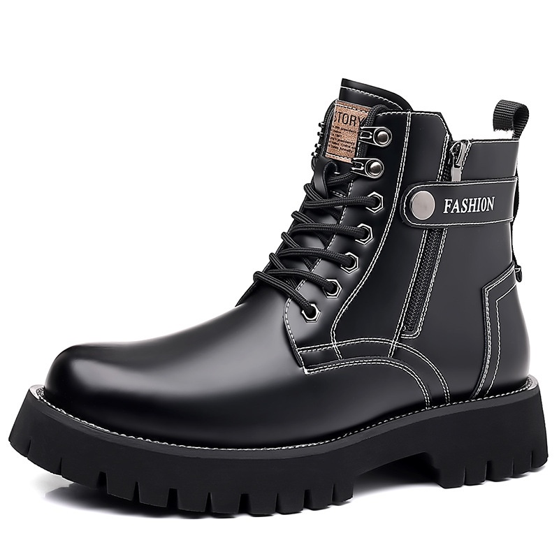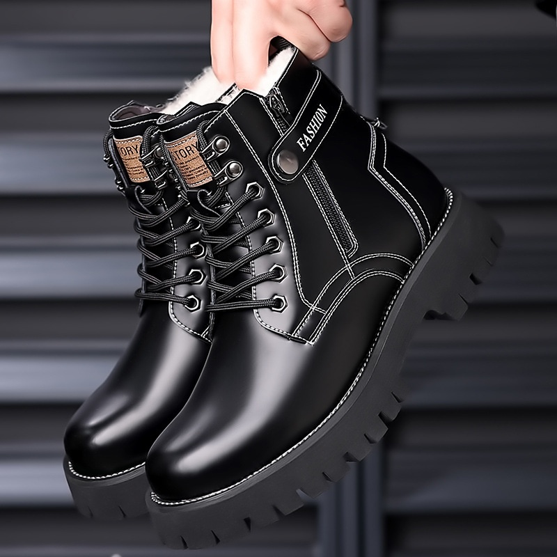 Martin Boots Men Wool British Style High Top Leathery Boots Casual Thick Sole Thickened Boots Plus Velvet Cotton Work Boots