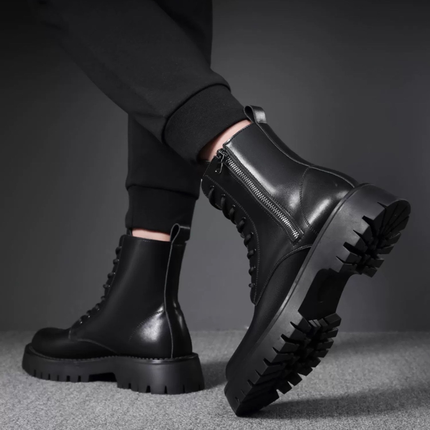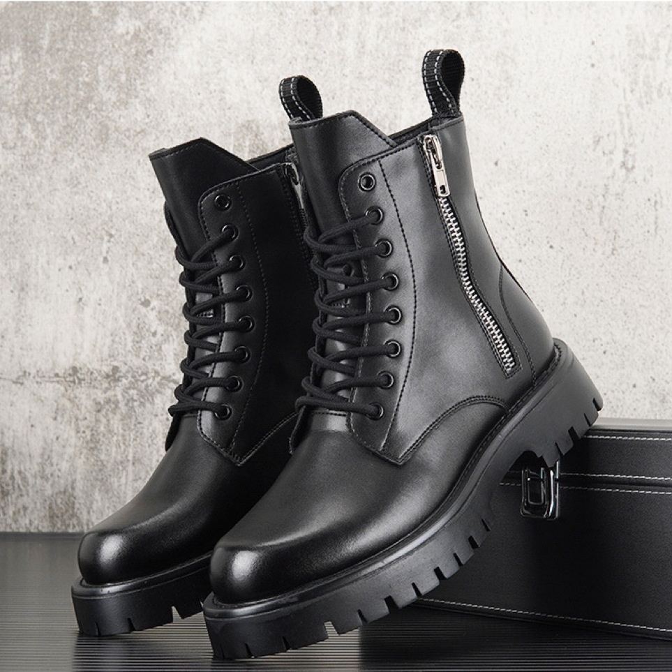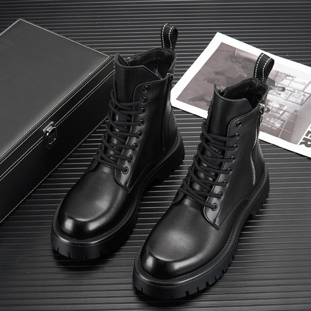Autumn Martin Boots Men's Work Boots High Top British Men's Boots Winter Plus Velvet Warm Cotton Boots Zipper Short Boots